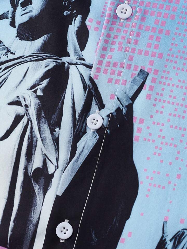 Street Life Men'S Statue Of Liberty Slogan Printed Short Sleeve Shirt