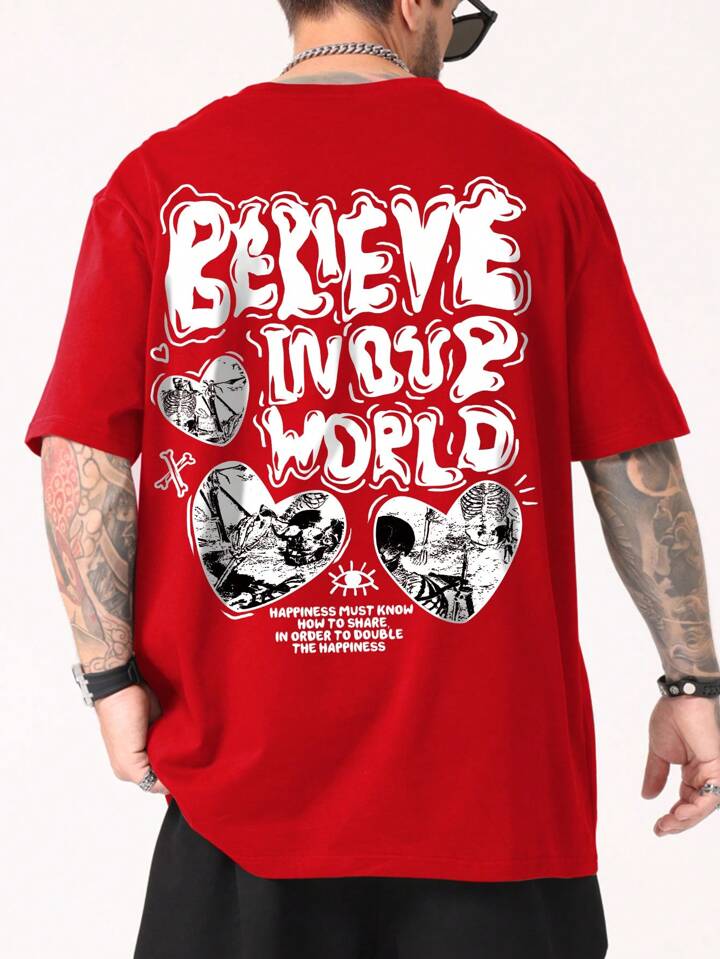 Street Life Men Skeleton & Slogan Graphic Tee For Halloween, School