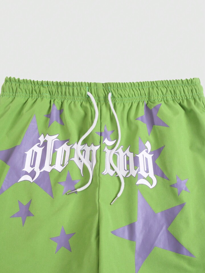 Street Life Men Star & Letter Graphic Drawstring Waist Shorts