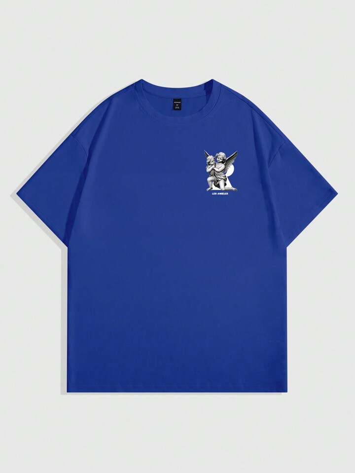 Street Life Men Summer Short Sleeve T-Shirt With Printed Angel Gypsum Statue
