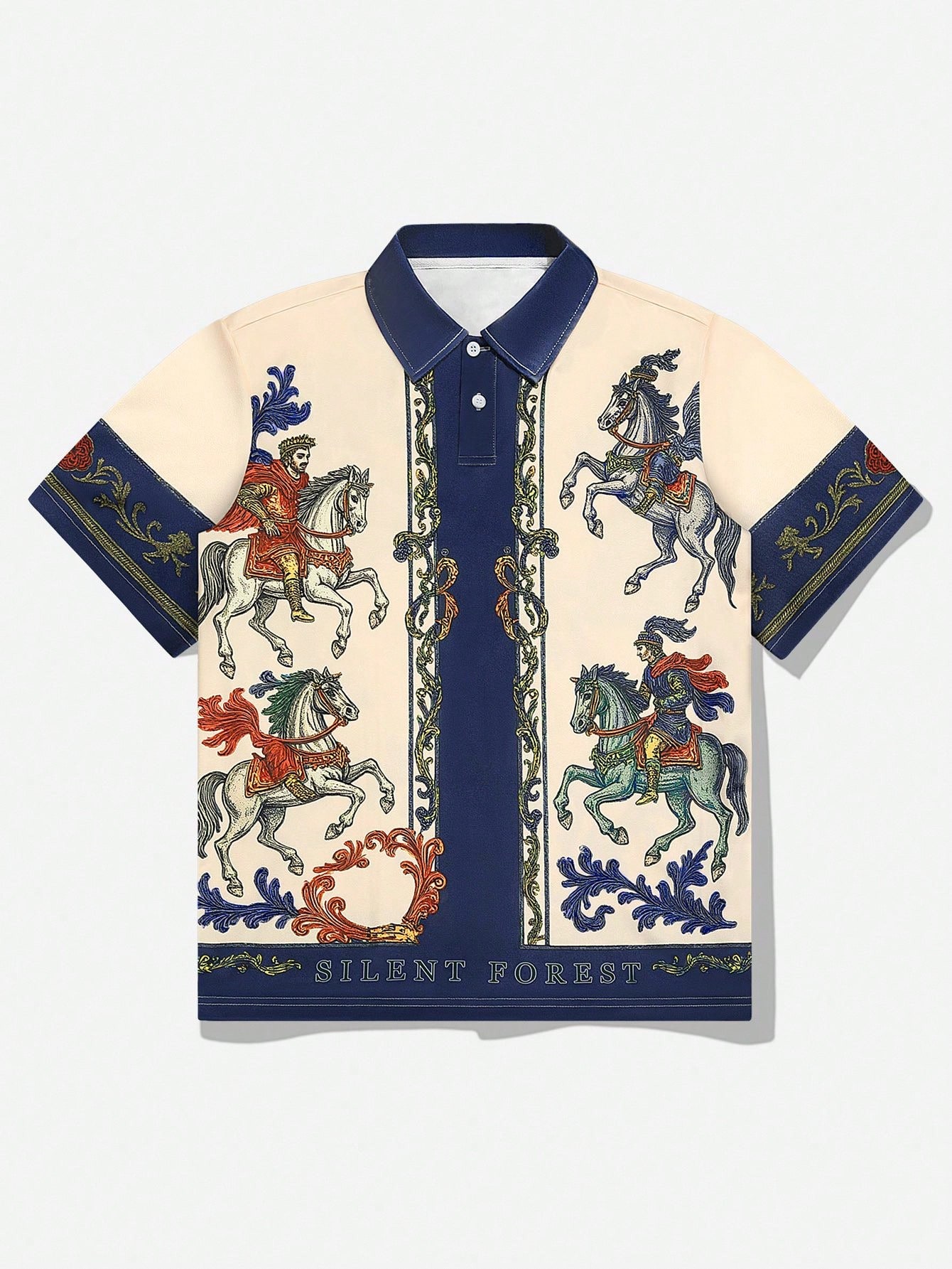 Street Life Men's All-Over Print Button Vintage Casual Short Sleeve Polo Shirt
