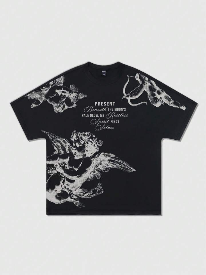 Street Life Men's Angel Batwing Sleeve Printed Short Sleeve T-Shirt, Suitable For Everyday Wear, Spring/Summer, Halloween