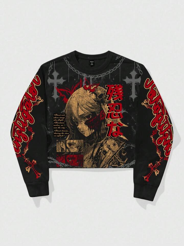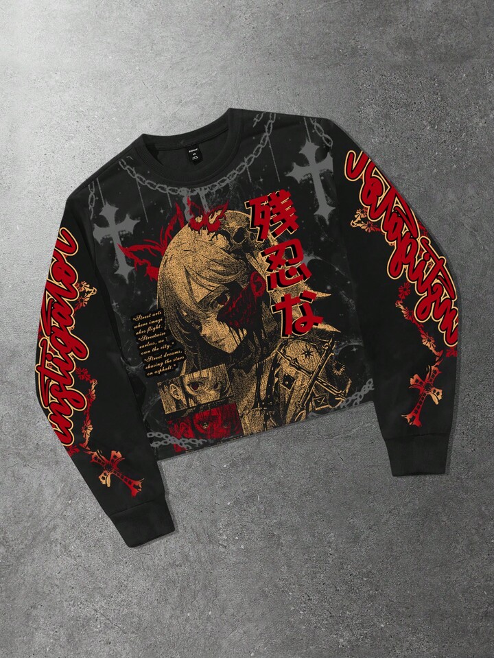 Street Life Men's Anime Girl Graphic Long Sleeve Sweatshirt, Fall