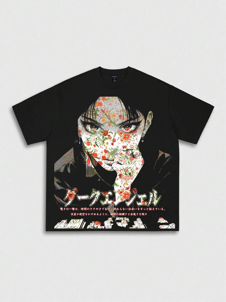 Men's Anime Two-Dimensional Graphic Print Short Sleeve T-Shirt, Rave