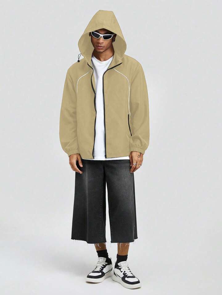 Street Life Men's Autumn Casual Contrast Color Trim Drawstring Hooded Jacket