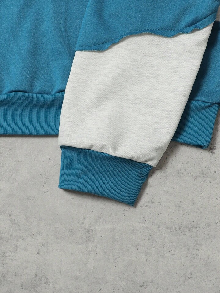Street Life Men's Autumn Long Sleeve Pocket Contrast Color Patchwork Loose Hoodie