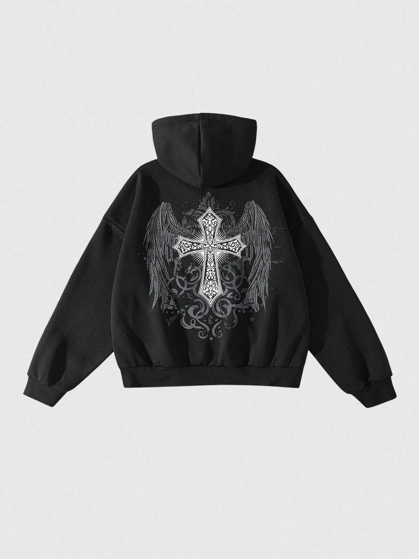 Street Life Men's Autumn Wing & Cross Print Zip-Up Hoodie Sweatshirt