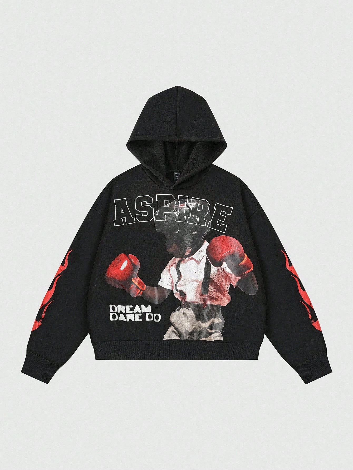 Street Life Men's Boxer Character Print Loose Cropped Hoodie