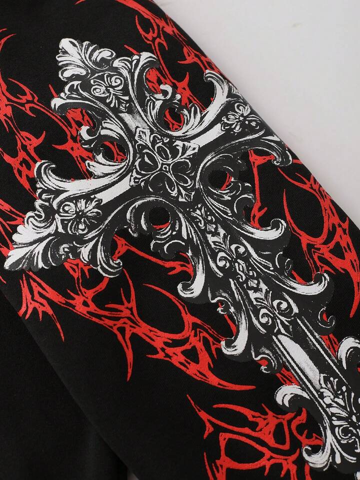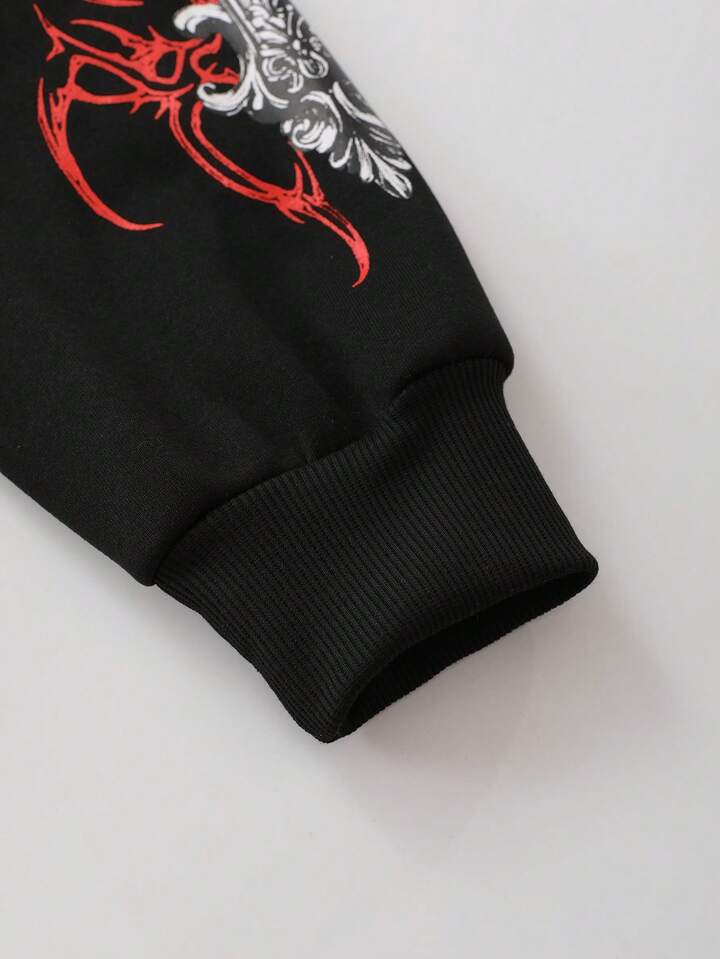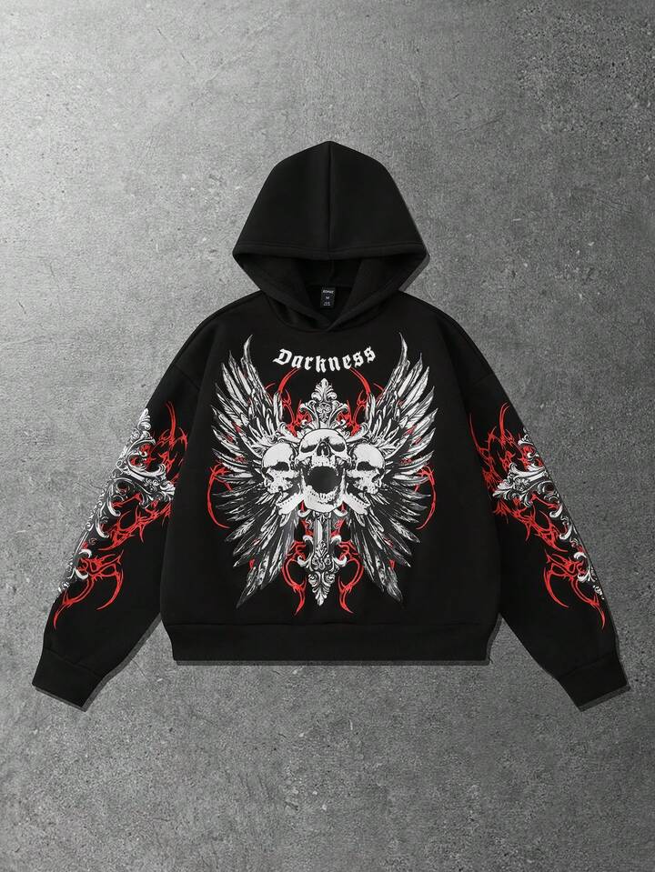 Street Life Men's Boxer Skull Character Print Loose Cropped Hoodie
