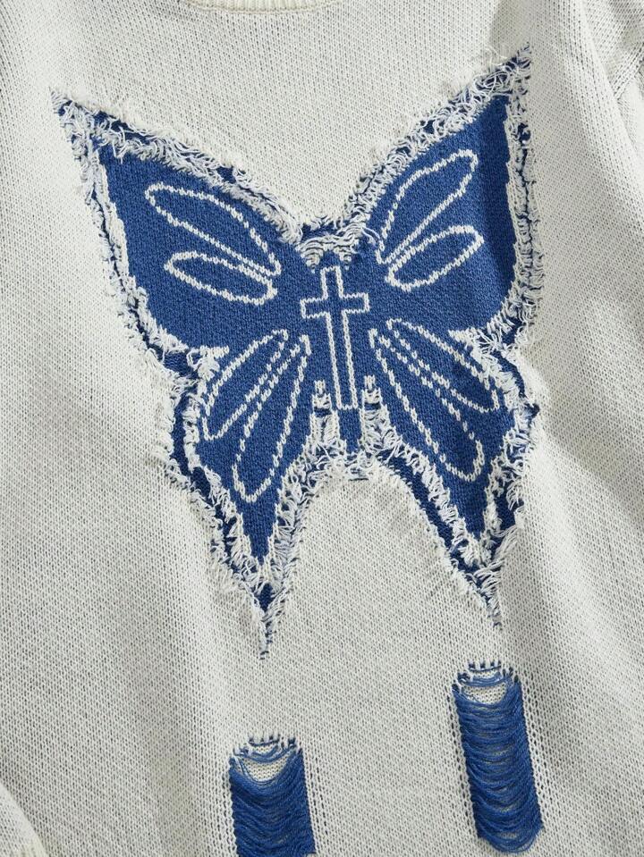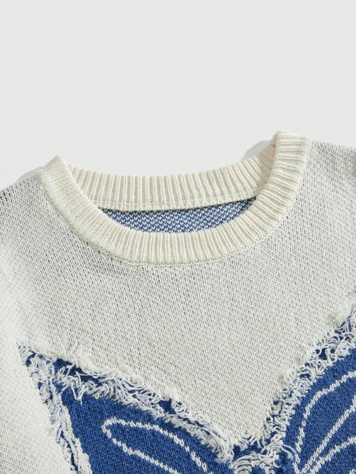Street Life Men's Butterfly Pattern Crew Neck Long Sleeve Casual Pullover Sweatshirt, Suitable For Daily Wear