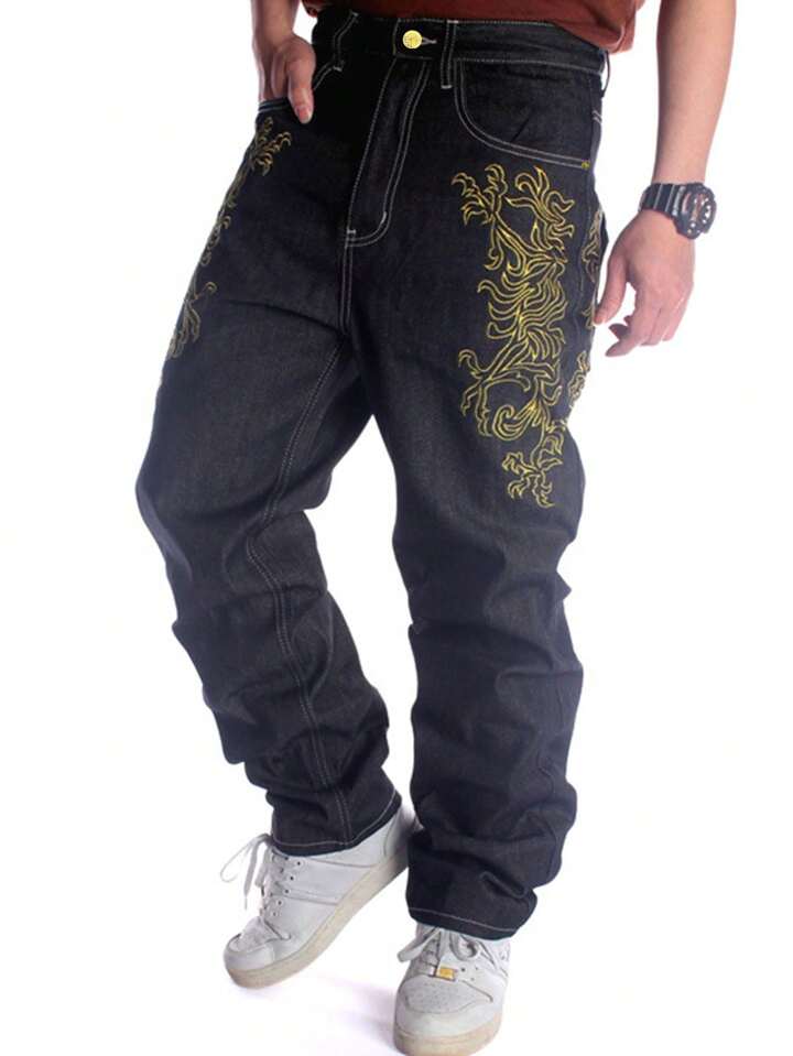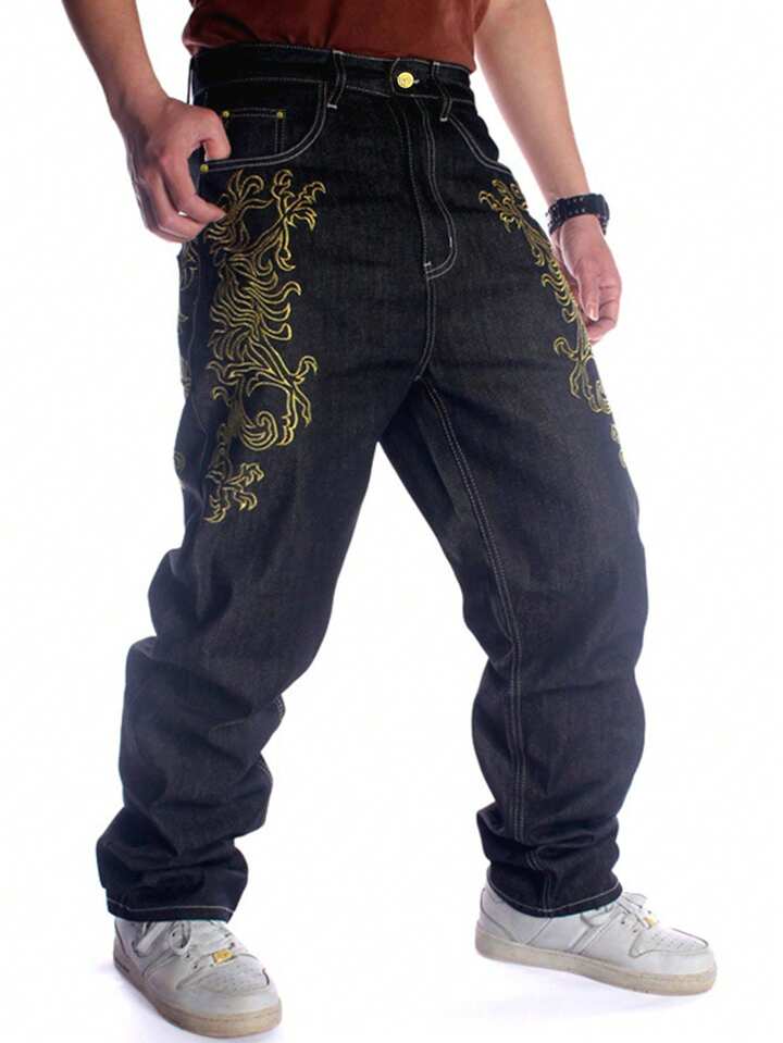 Street Life Men's Button Decor Waist Belt Pocket Print Fashion Streetwear Denim