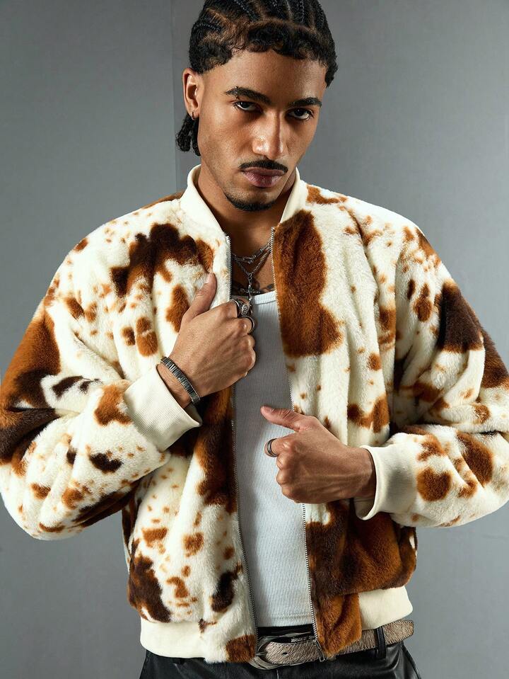 Street Life Men's Casual Cow Print Jacket, Autumn/Winter