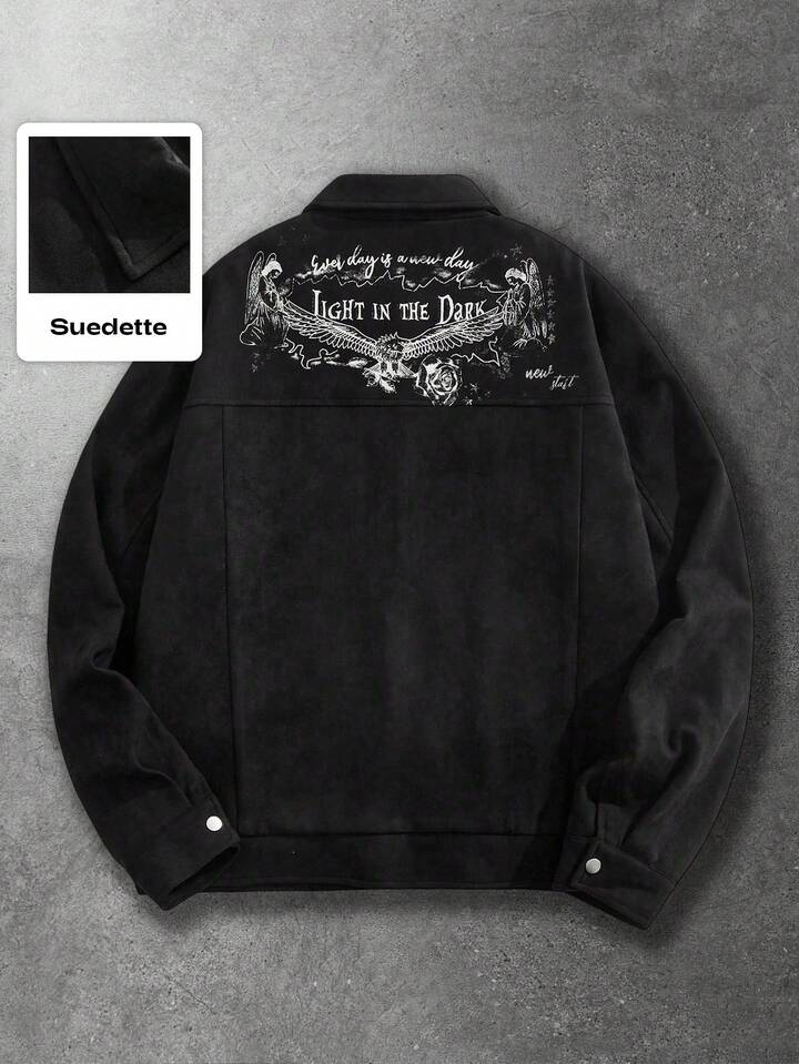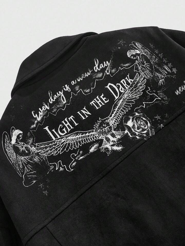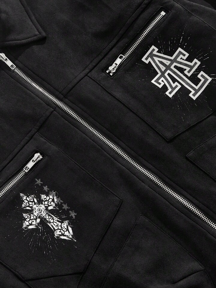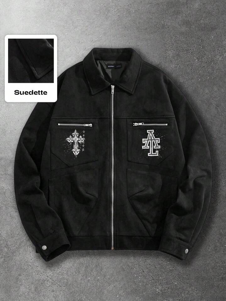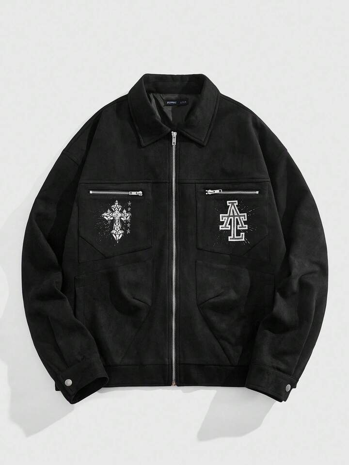 Street Life Men's Casual Cross & Letter Print Jacket, Autumn