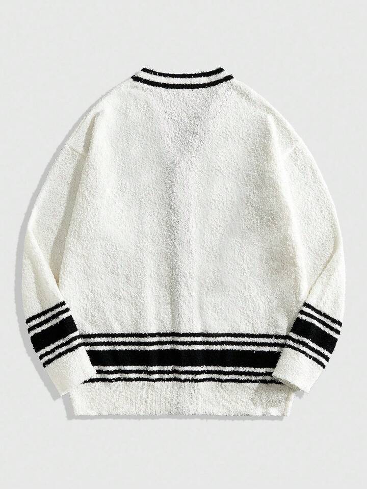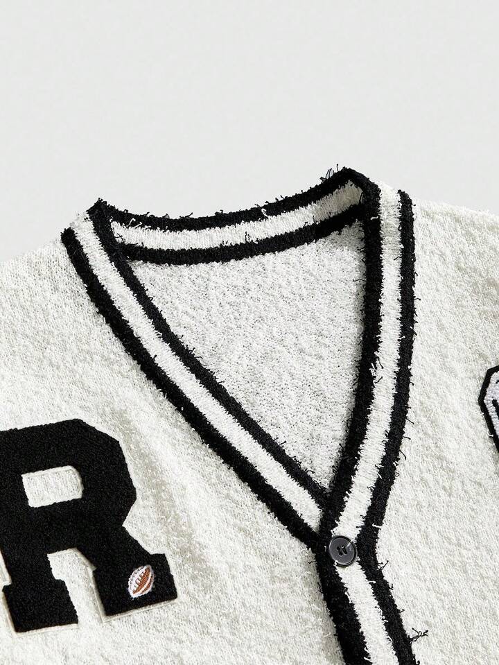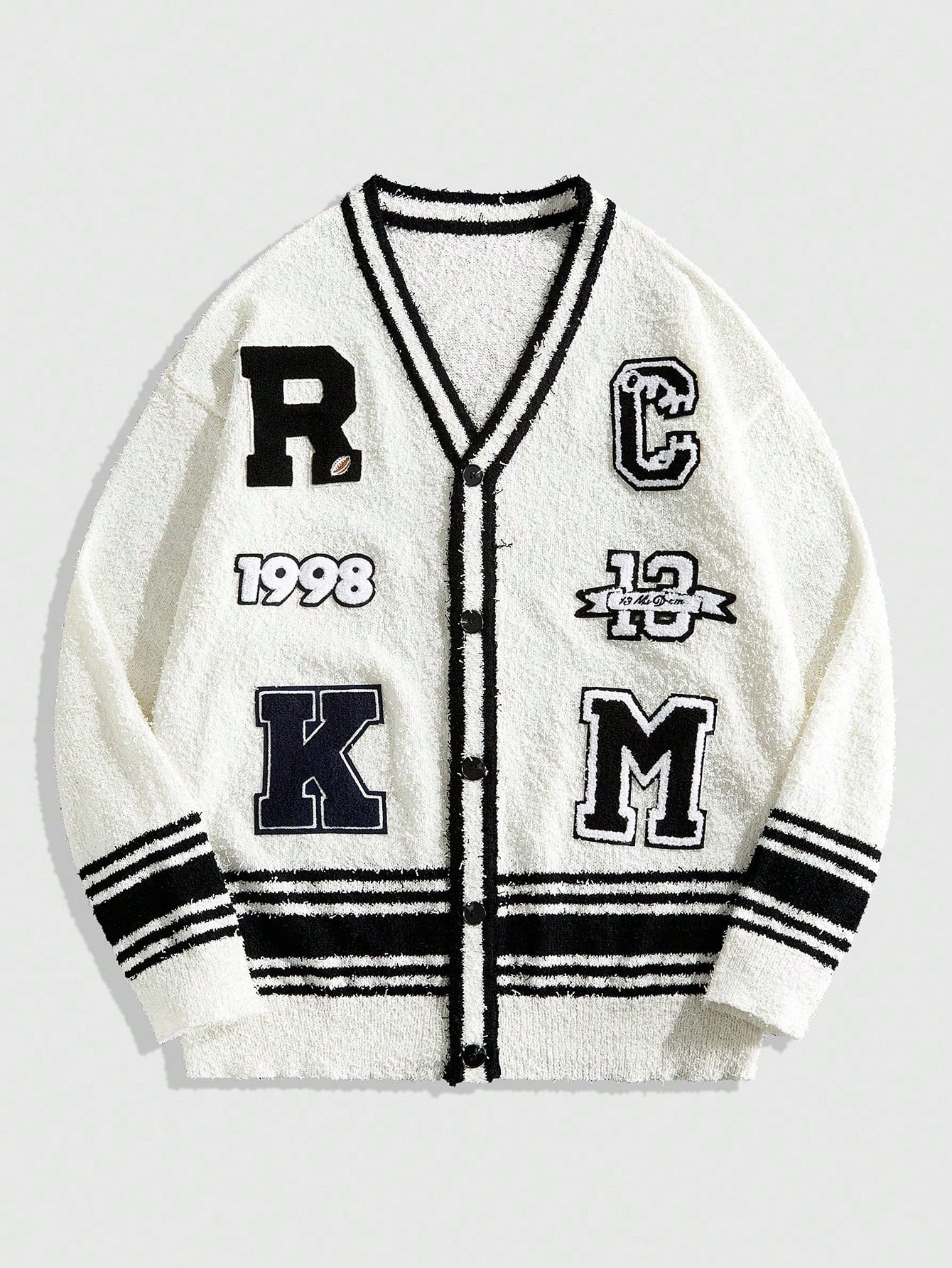 Street Life Men's Casual Daily Letter Patch Knit Cardigan, Autumn/Winter