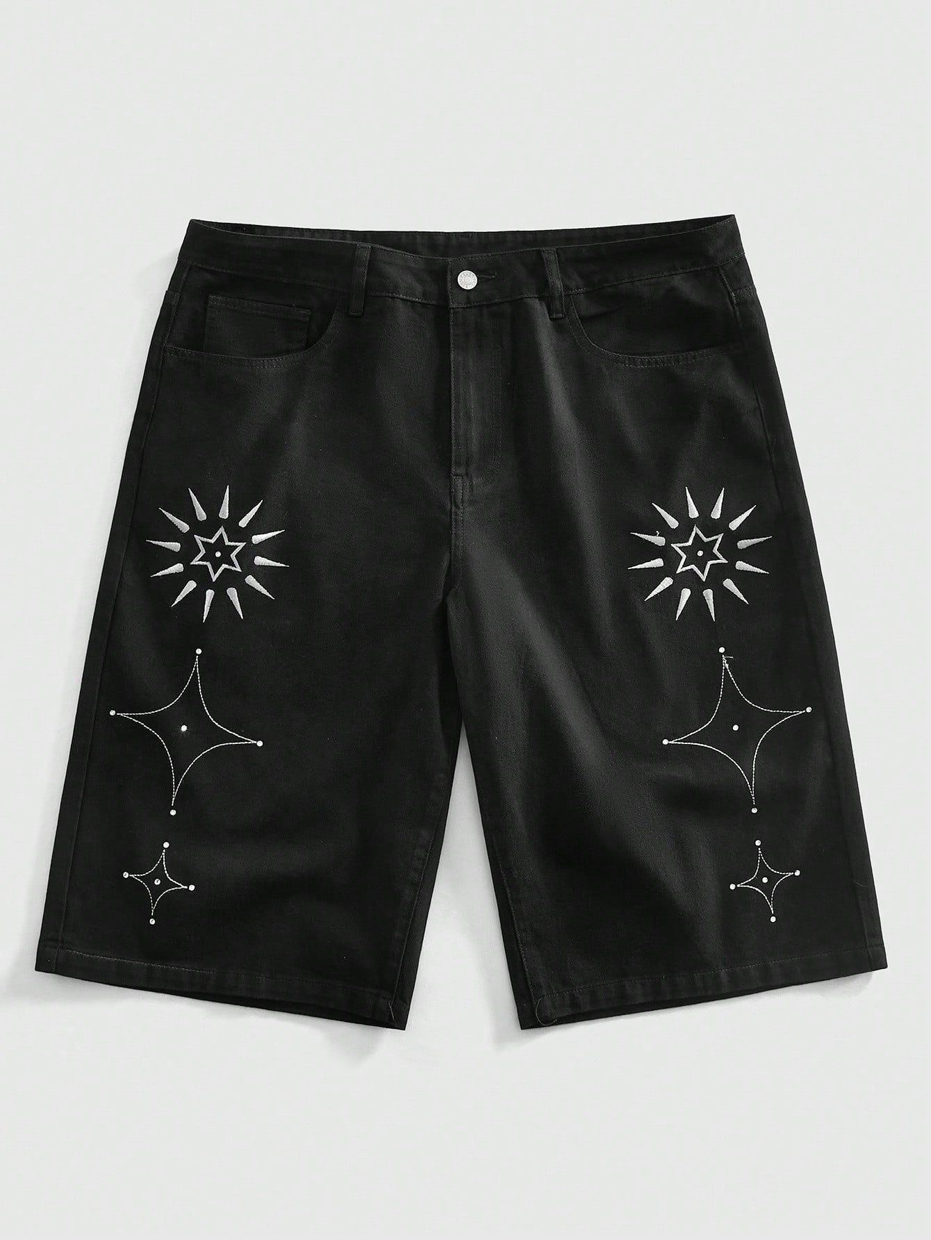Street Life Men's Casual Everyday Embroidered Detail Loose Denim Shorts