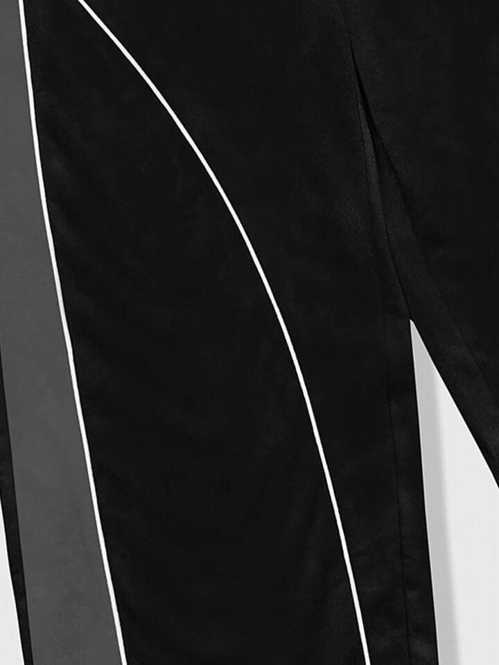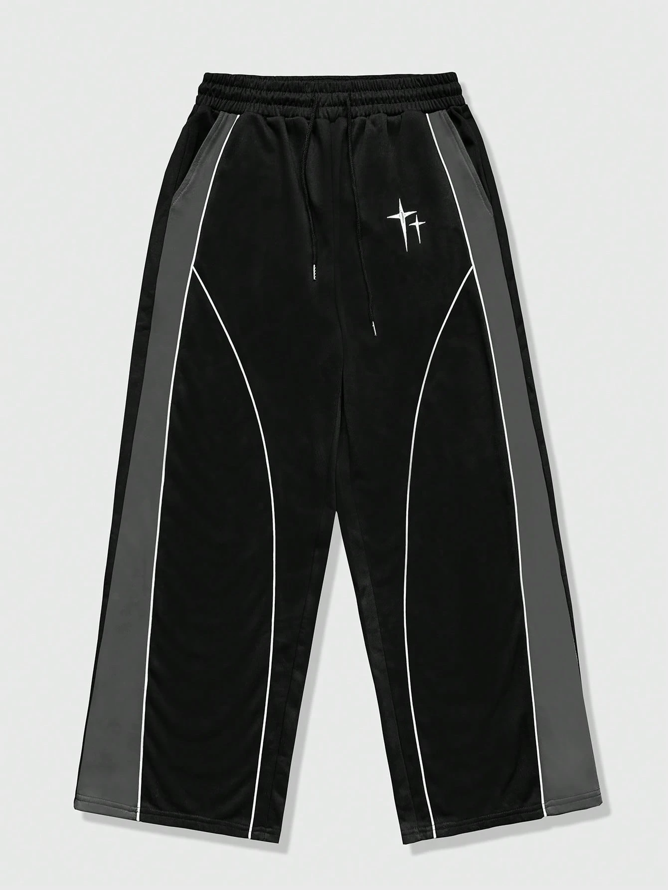 Street Life Men's Casual Fashion Street Daily Commute Drawstring Waist Star Embroidery Contrast Piping Loose Wide-Leg Sweatpants