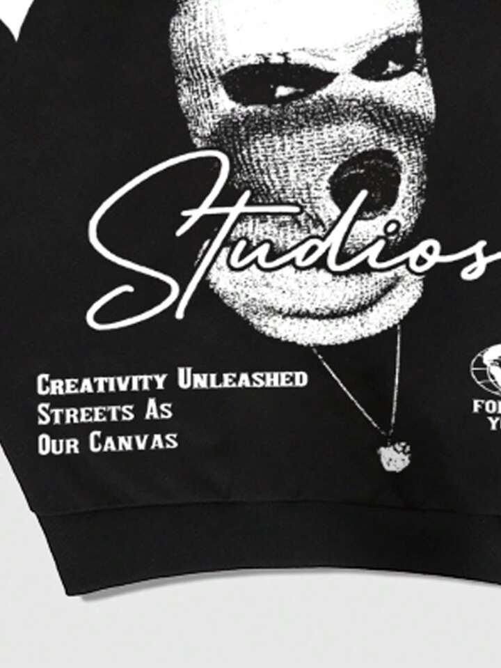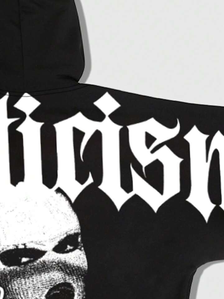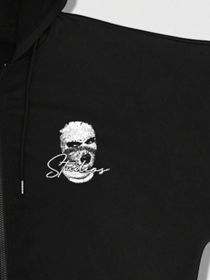 Street Life Men's Casual Figure & Letter Print Zip-Up Hoodie, For Fall