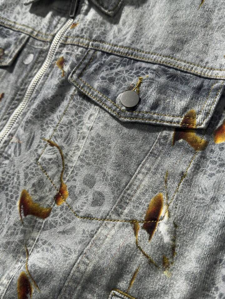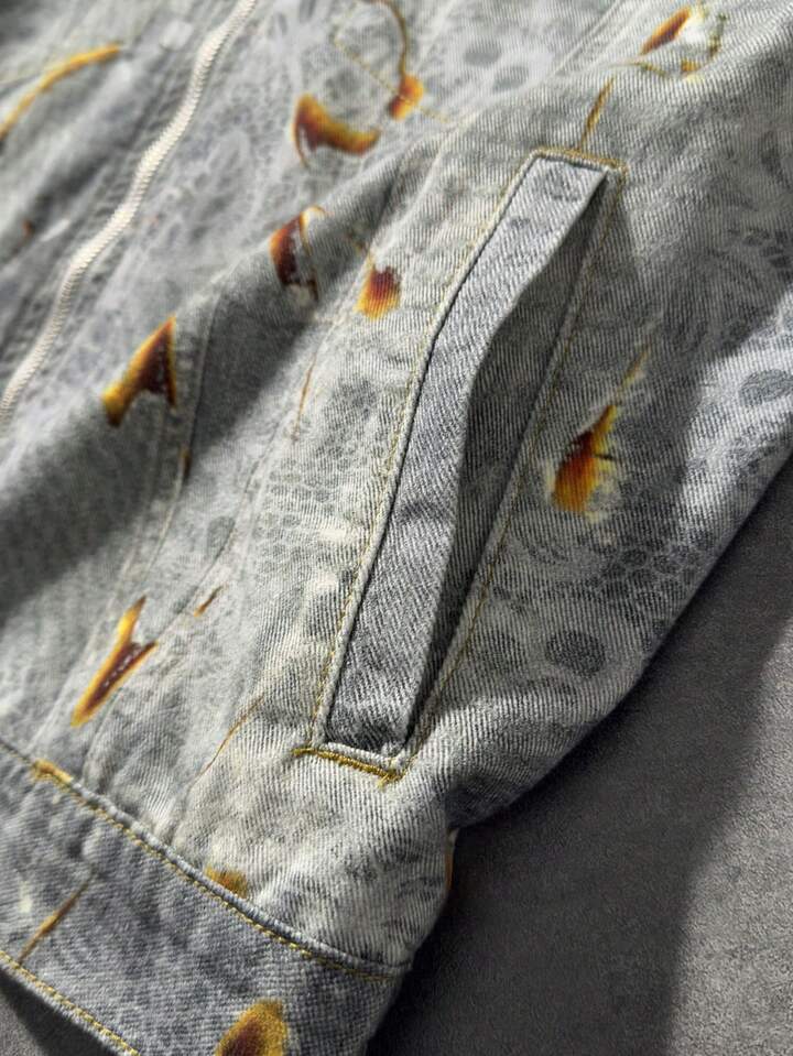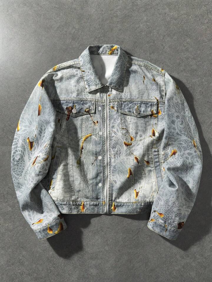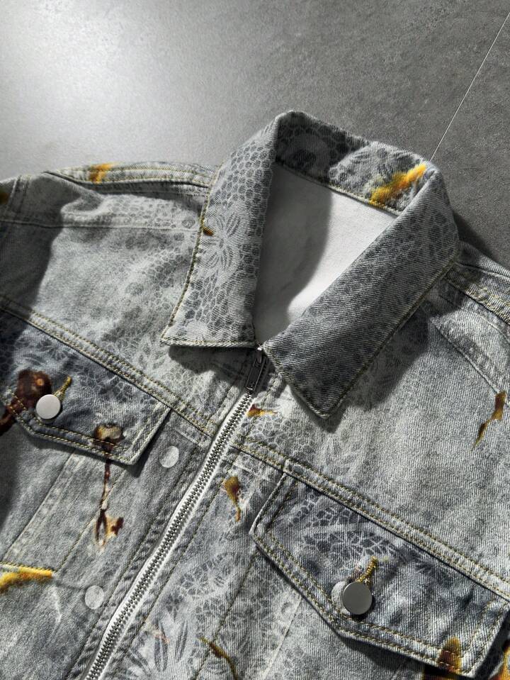 Street Life Men's Casual Full Print Zip-Up Denim Jacket, Autumn