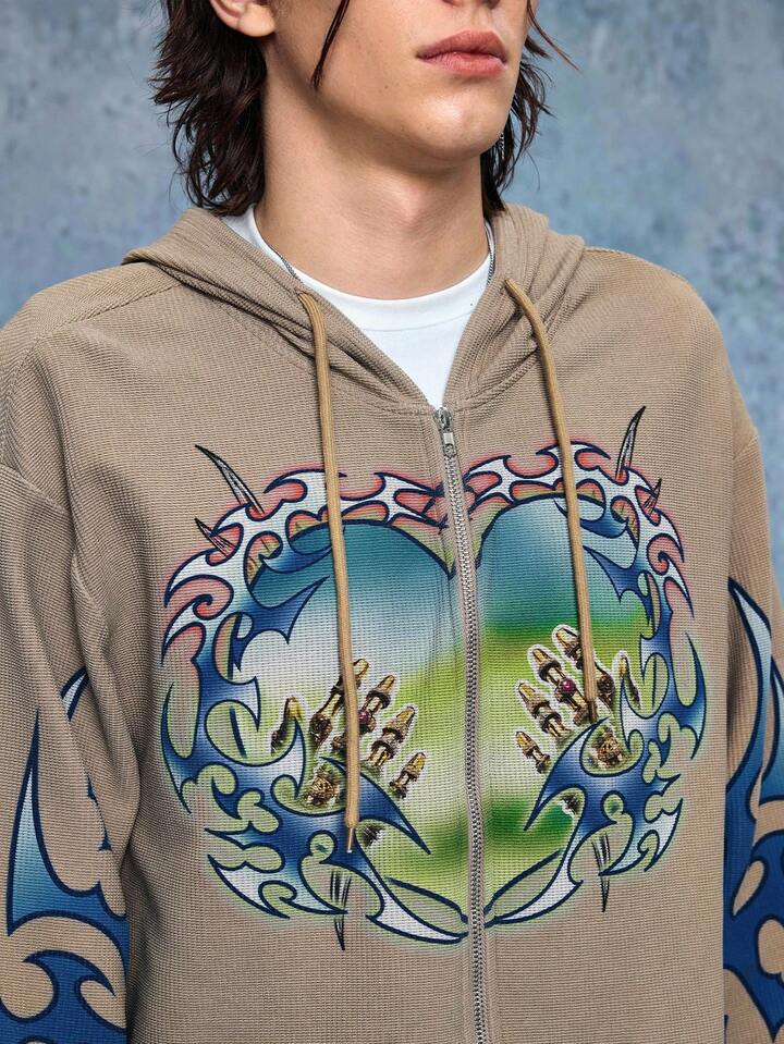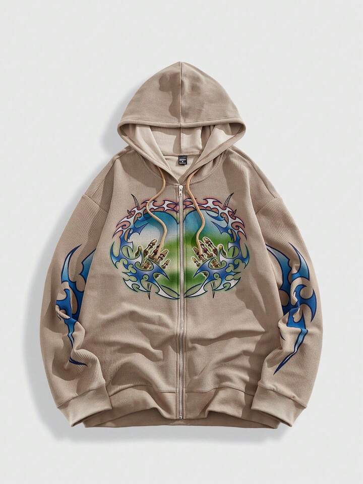 Street Life Men's Casual Graphic Print Zip-Up Drawstring Hoodie Sweatshirt, Autumn