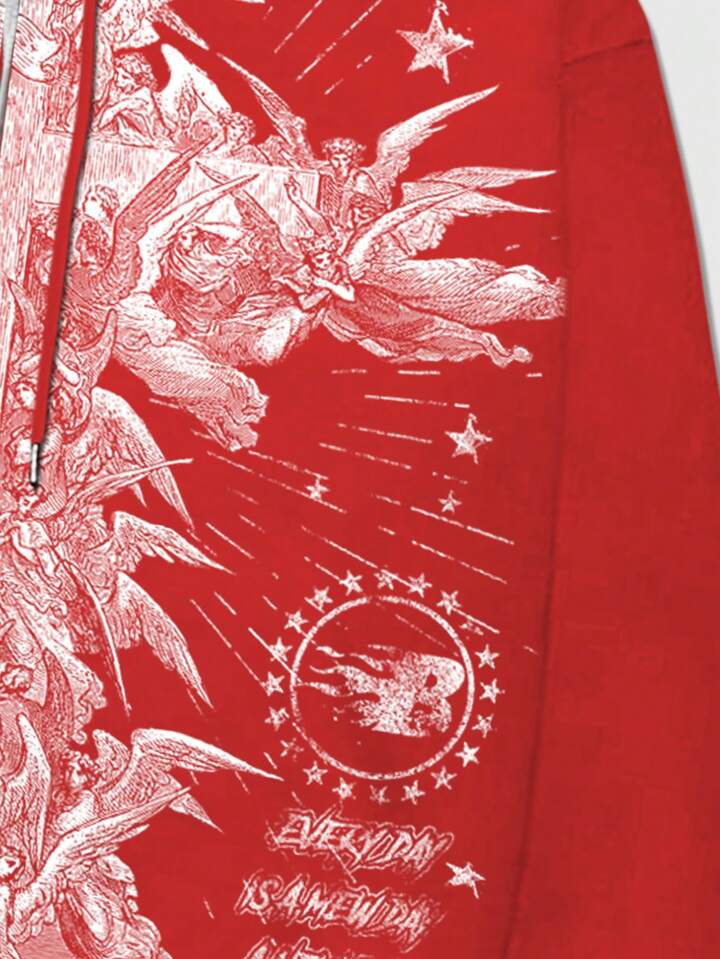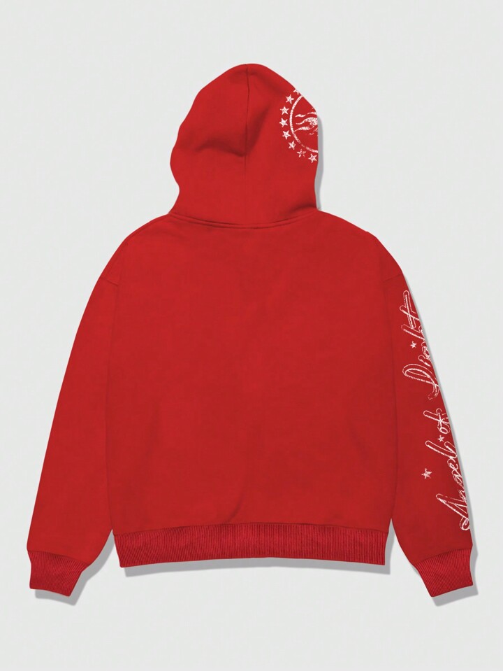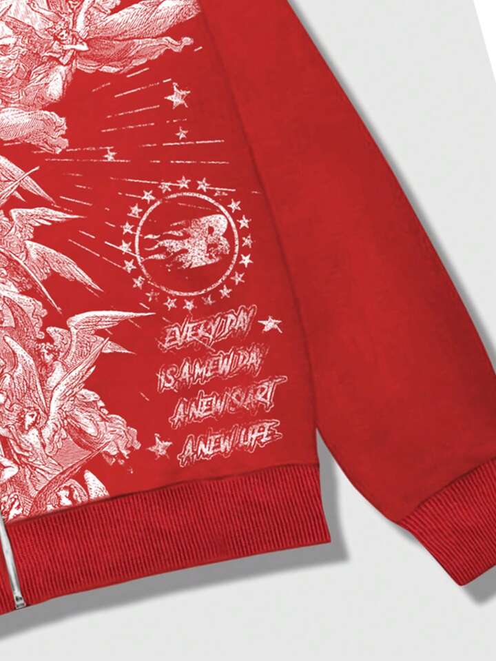 Street Life Men's Casual Letter & Angel Print Zip Up Drawstring Hoodie Sweatshirt, Autumn