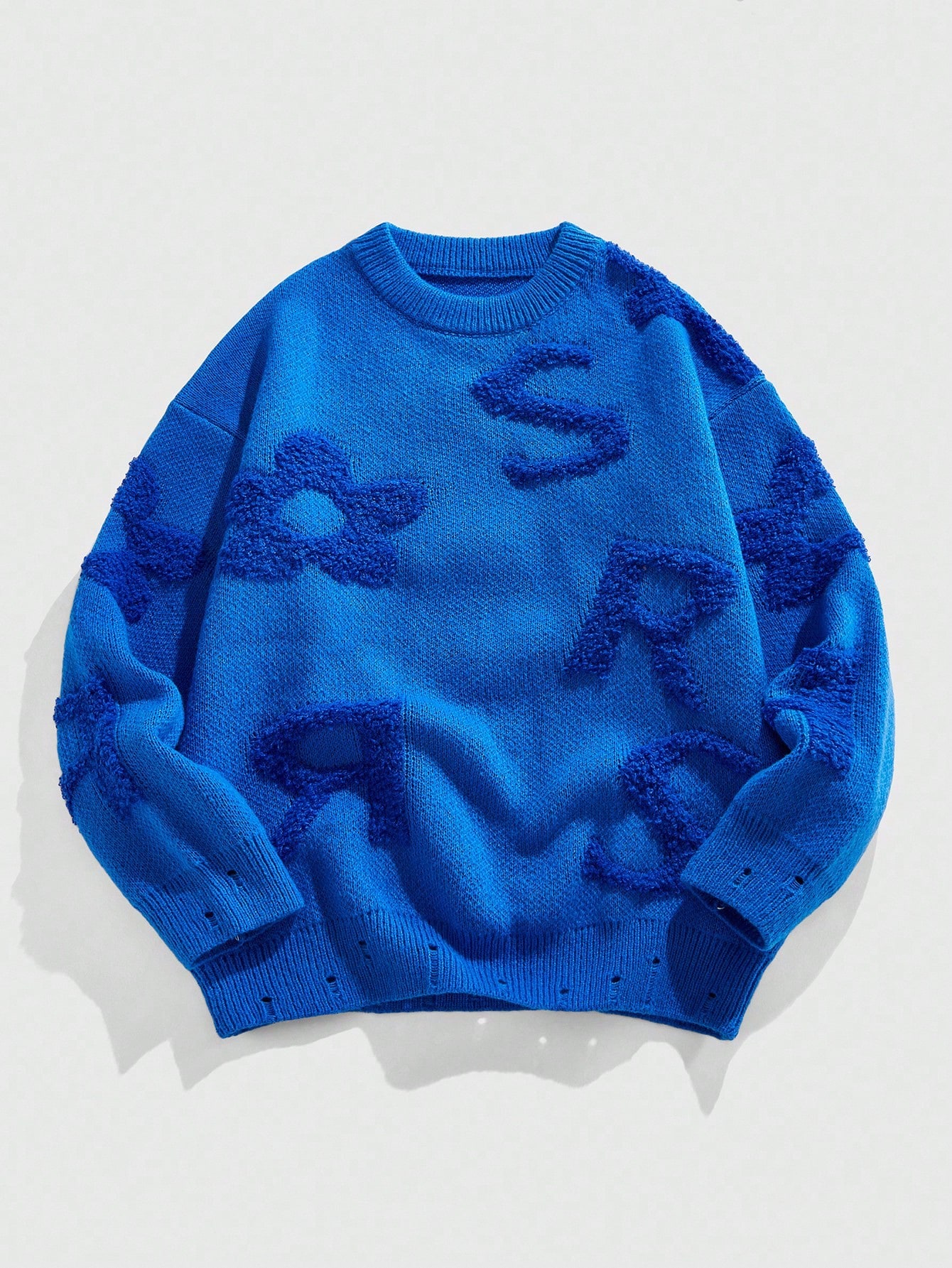 Street Life Men's Casual Letter Embroidered Crew Neck Long Sleeve Loose Knit Sweater, Autumn