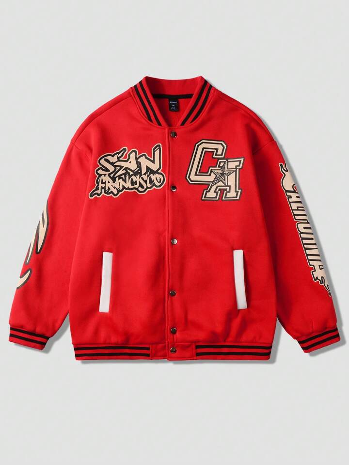 Street Life Men's Casual Letter & Numeral Print Baseball Jacket For Autumn/Winter