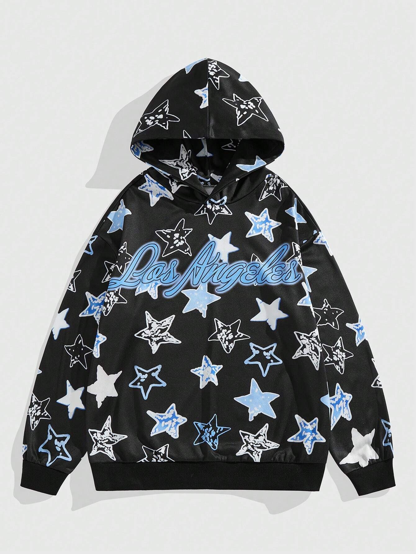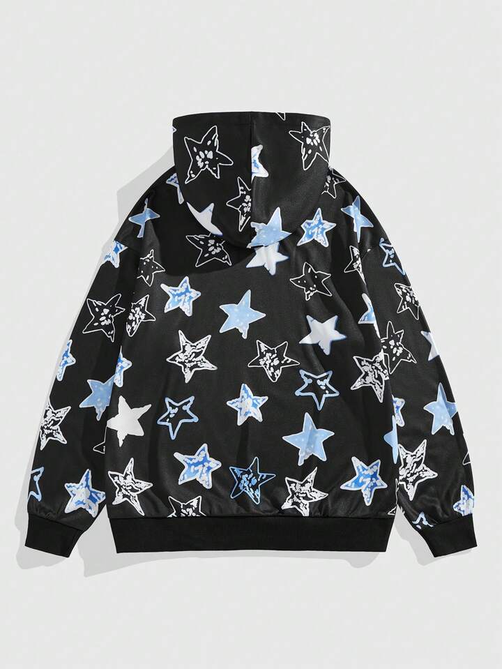 Street Life Men's Casual Letter & Pentagram Printed Long Sleeve Hoodie, Autumn