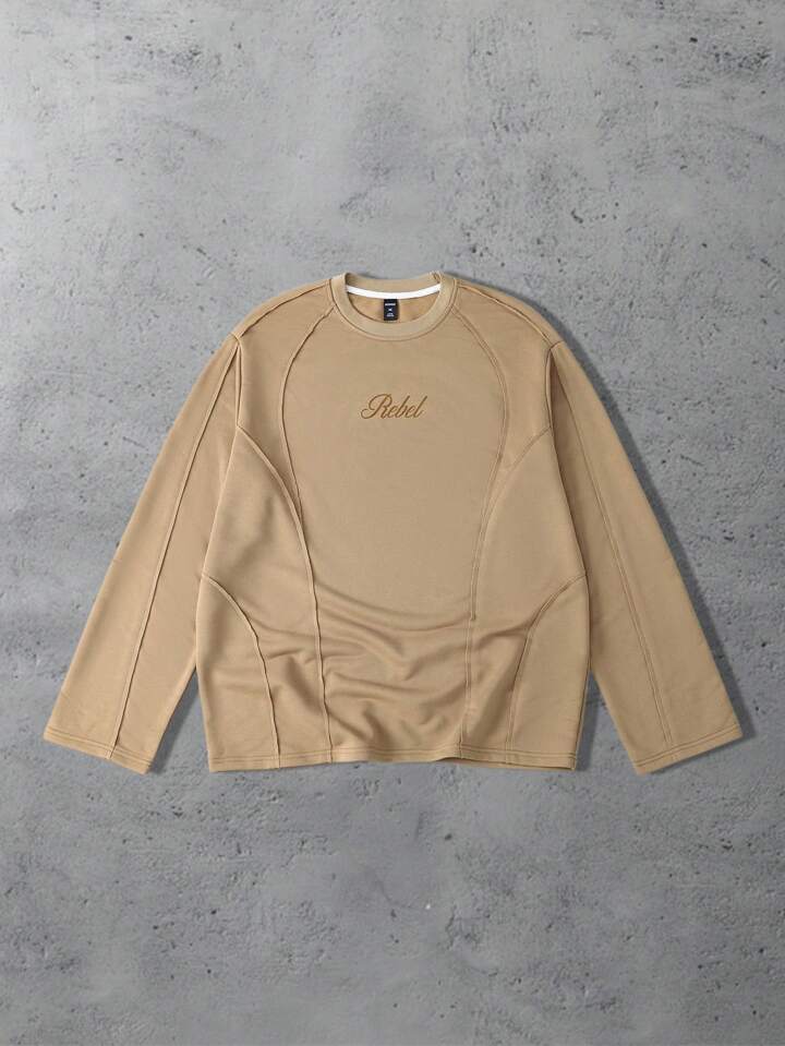 Street Life Men's Casual Letter Print Patchwork Long Sleeve T-Shirt, Spring/Autumn