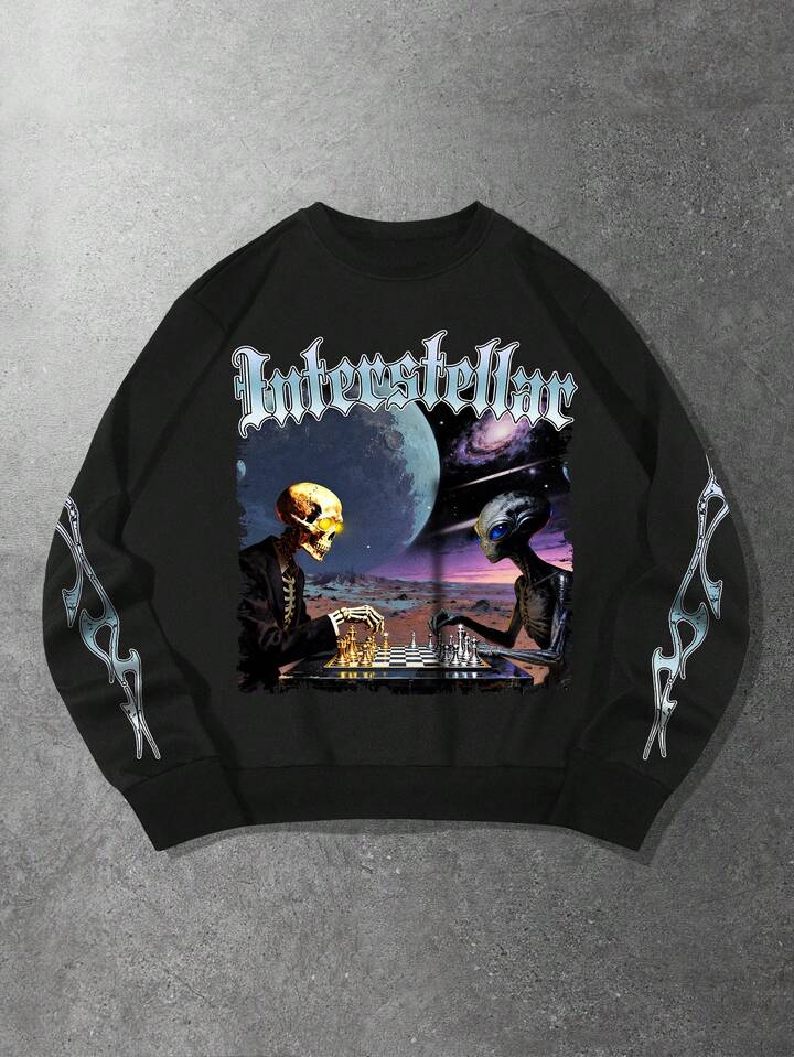 Street Life Men's Casual Loose Fit Alien Letter Print Crew Neck Long Sleeve Sweatshirt