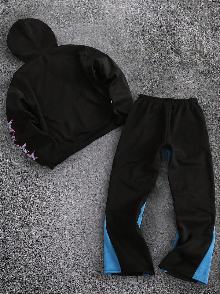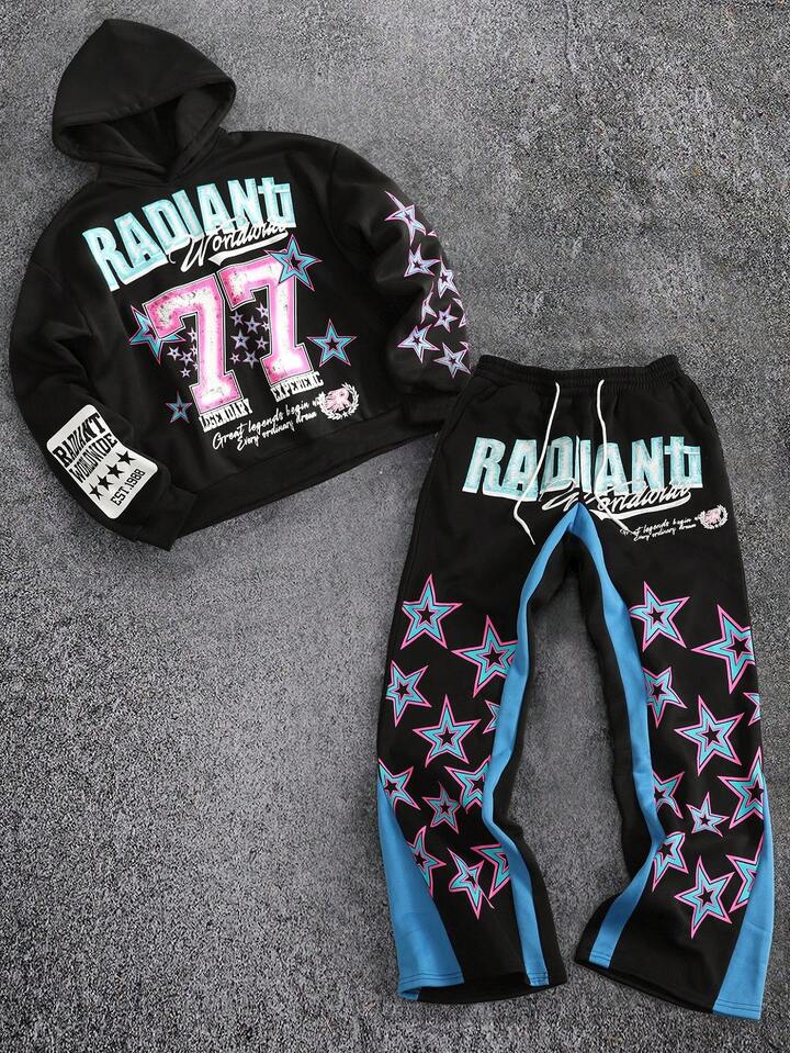Street Life Men's Casual Loose Letter Graphic Hoodie And Sweatpants Set, Street Style For Autumn