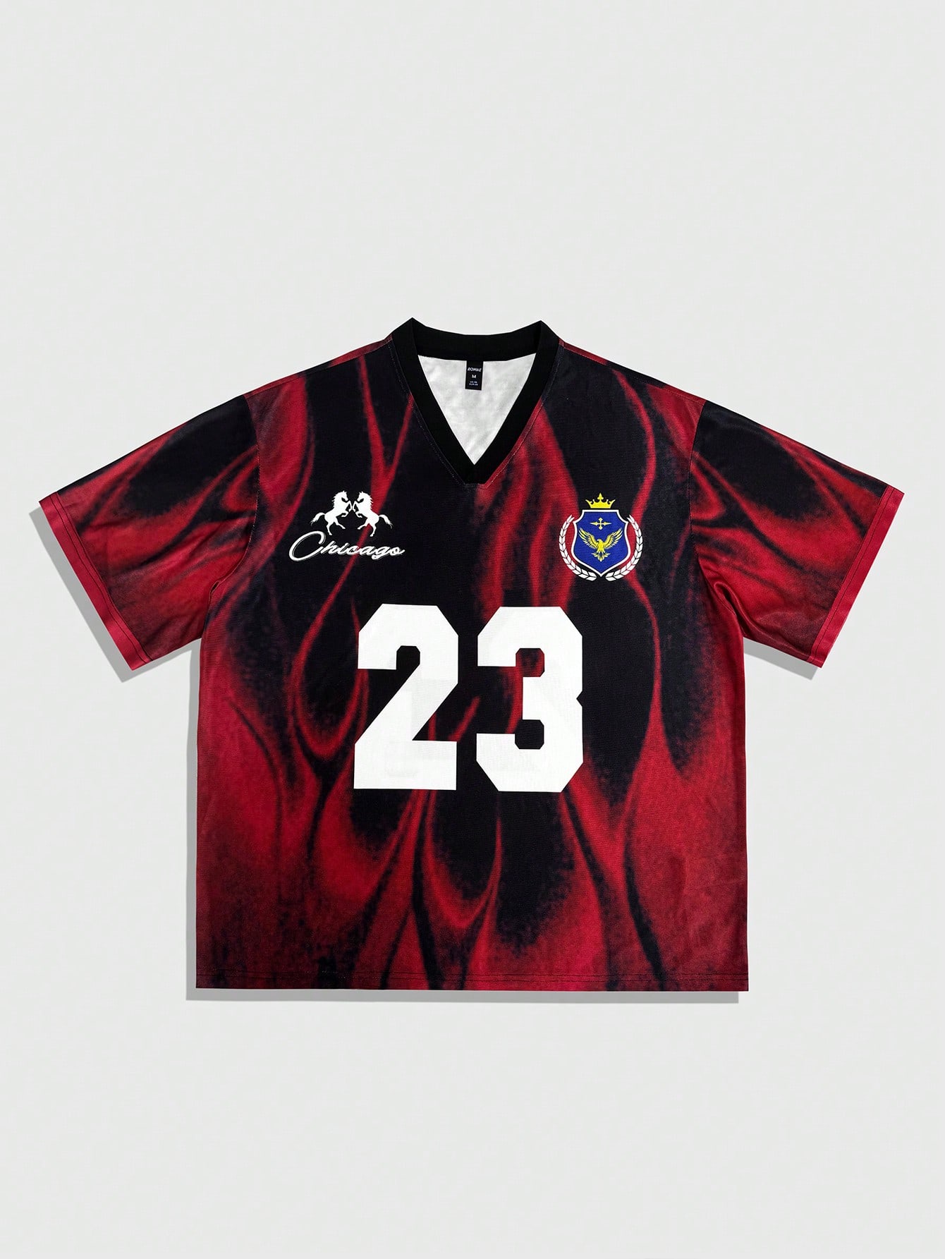 Street Life Men's Casual Numeric Print V-Neck Short Sleeve Jersey Top, Summer