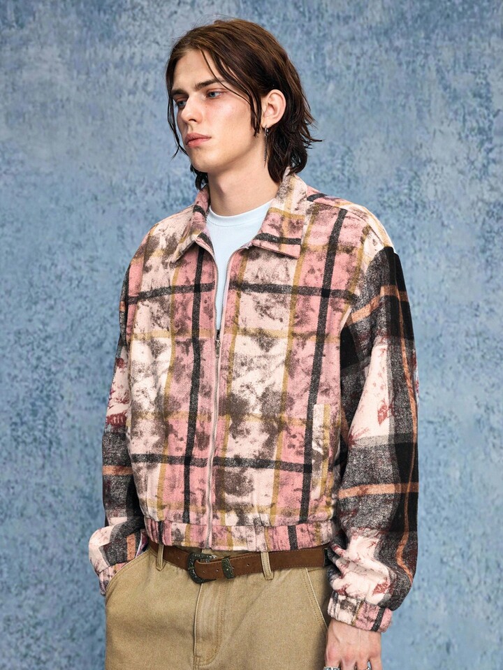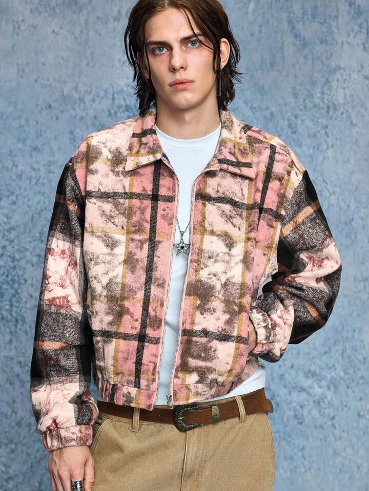 Street Life Men's Casual Plaid Patchwork Wool Blend Jacket, Autumn/Winter