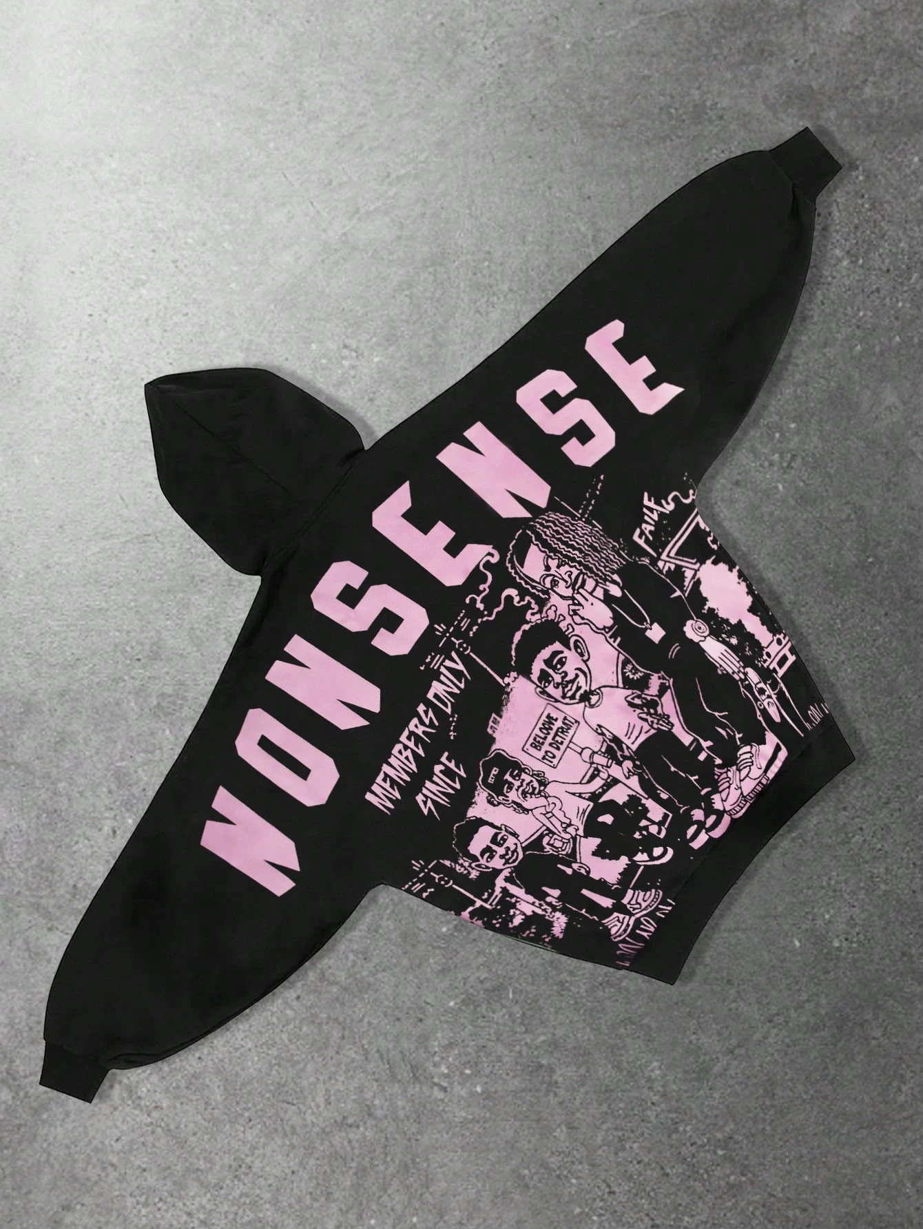Street Life Men's Casual Portrait & Letter Pattern Loose Fit Hoodie, Autumn