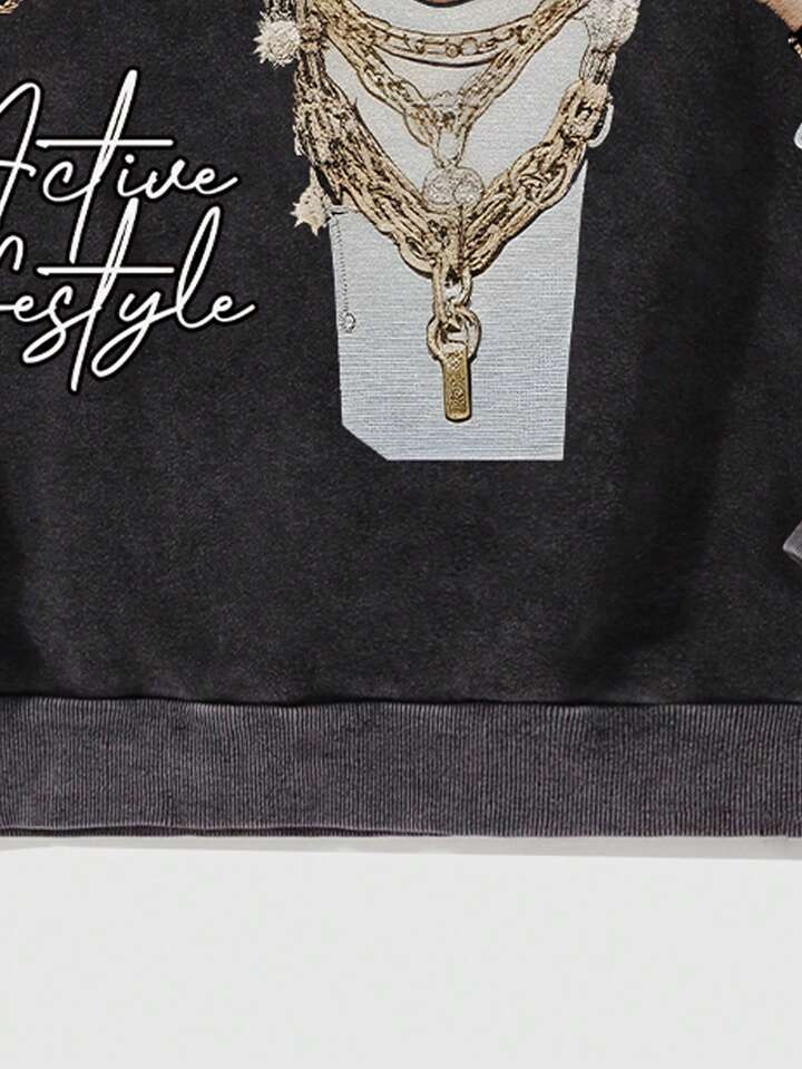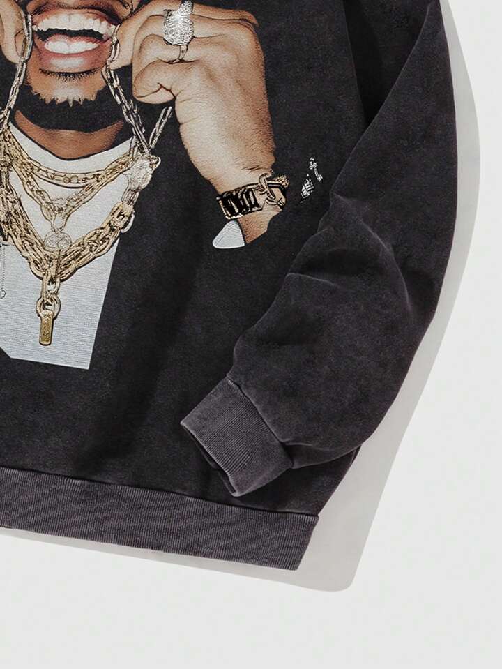 Street Life Men's Casual Portrait & Acid-Washed Hoodie, Spring/Autumn