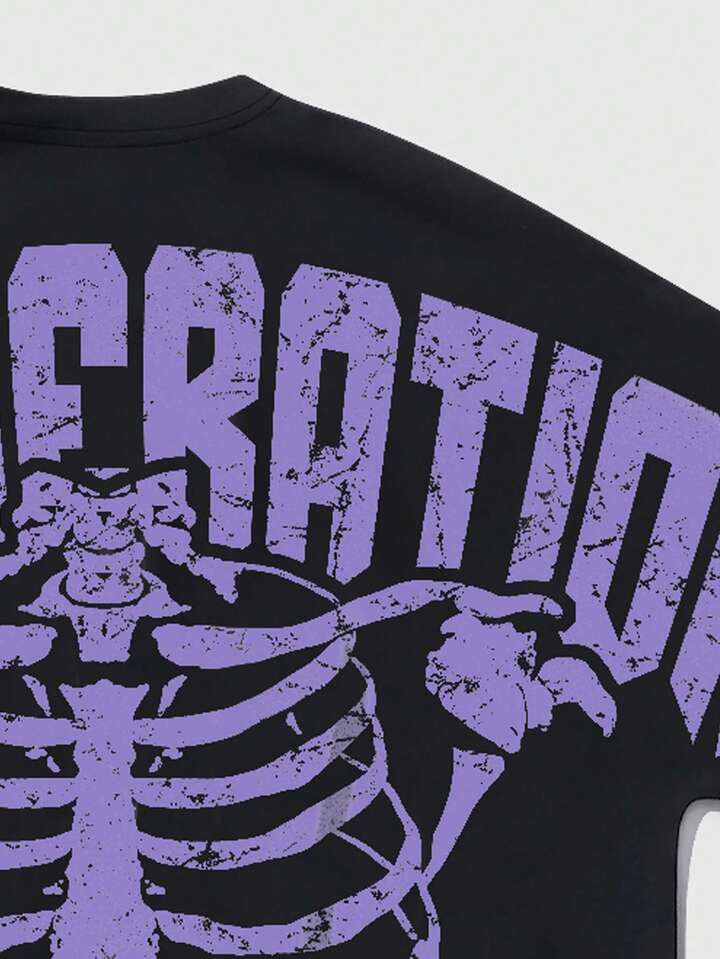 Street Life Men's Casual Skull & Letter Print Short Sleeve T-Shirt, Summer