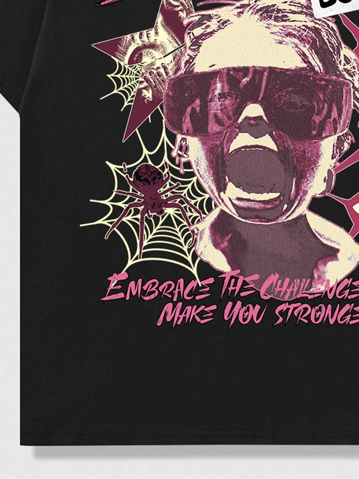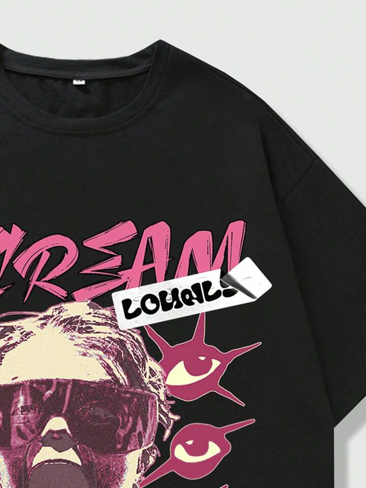 Street Life Men's Character And Slogan Printed Y2k T-Shirt, School