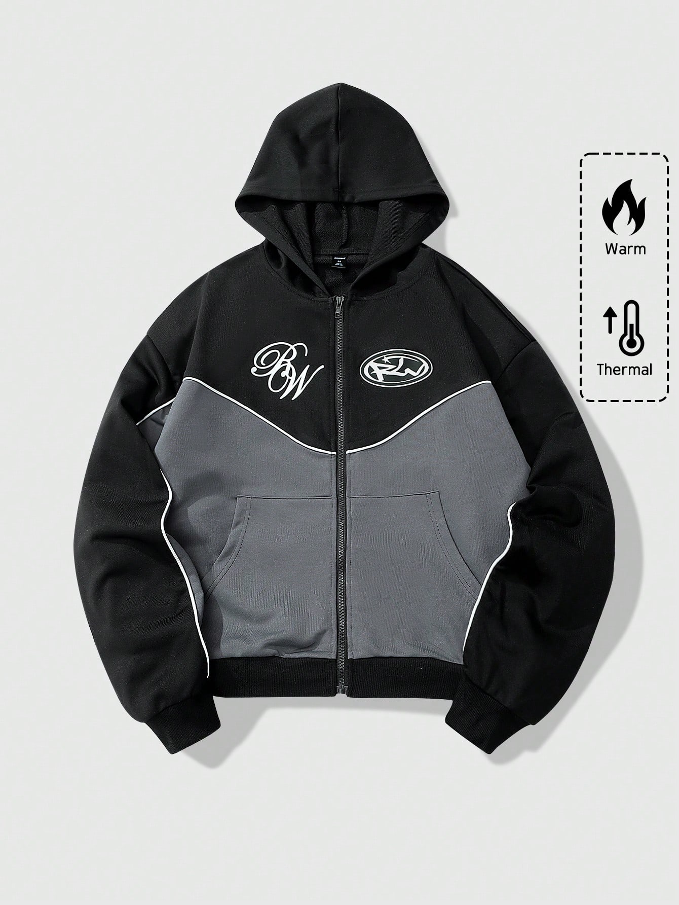 Prep Men's Contrast Color Print Hooded Long Sleeve Patchwork Sweatshirt