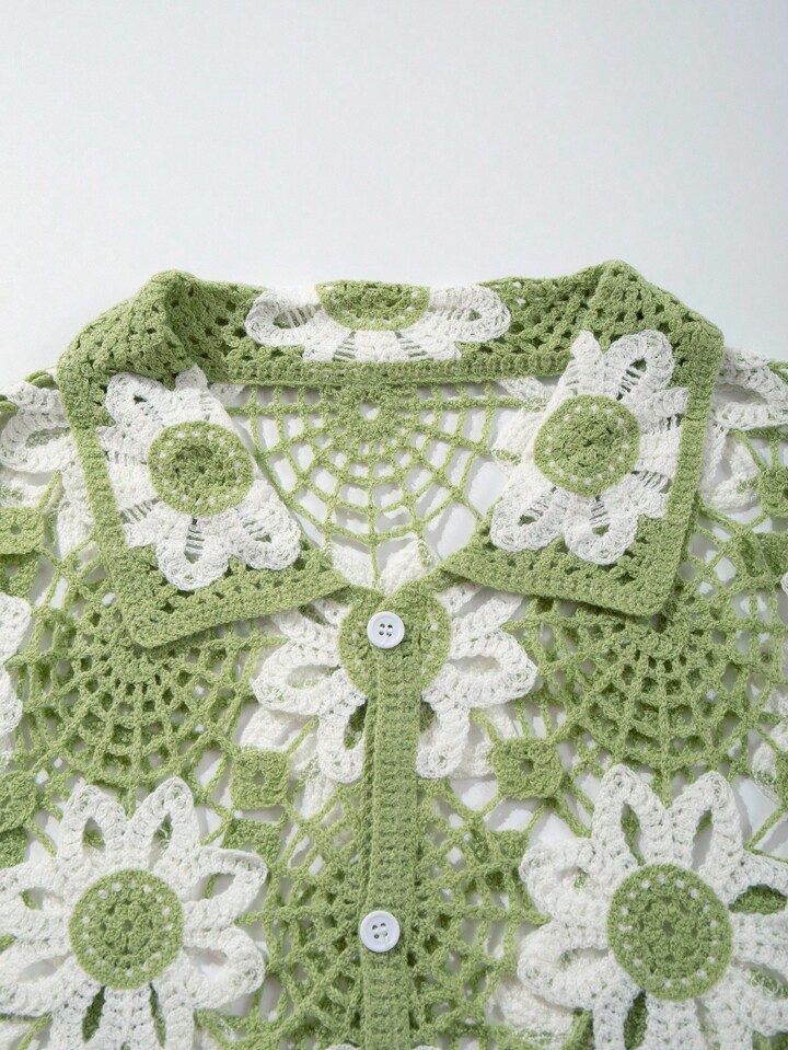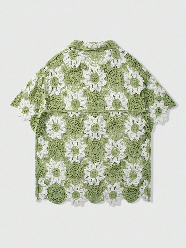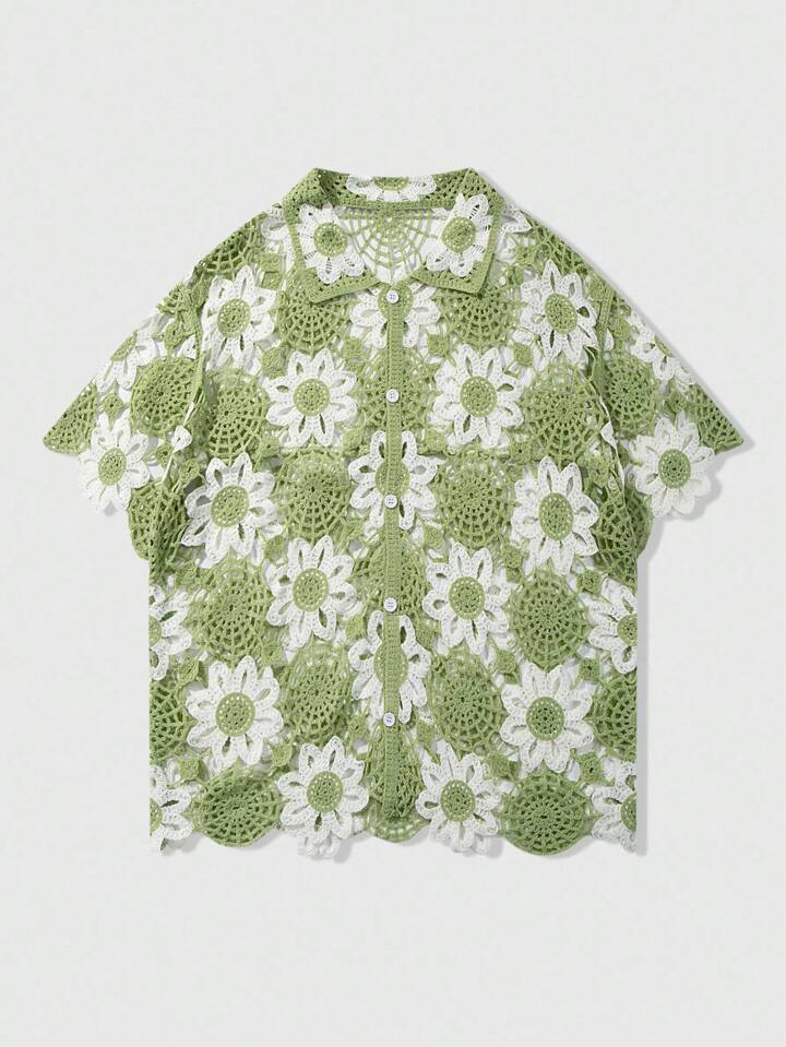 Street Life Men's Contrast Floral Hollow-Out Knit Sweater