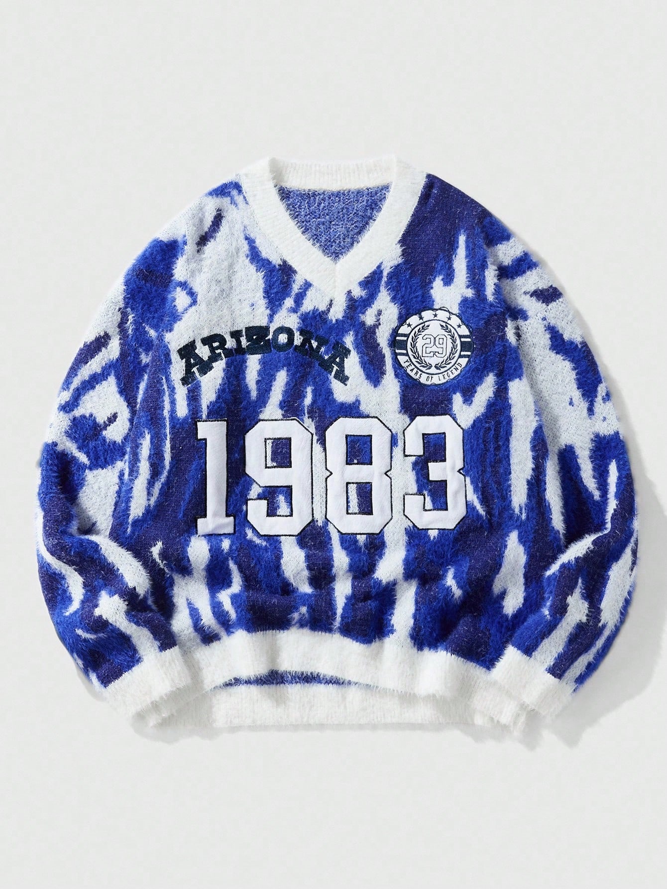Street Life Men's Crew Neck Embroidery Detail Colorblock Knit Sweater, Street Fashion, Fall/Winter
