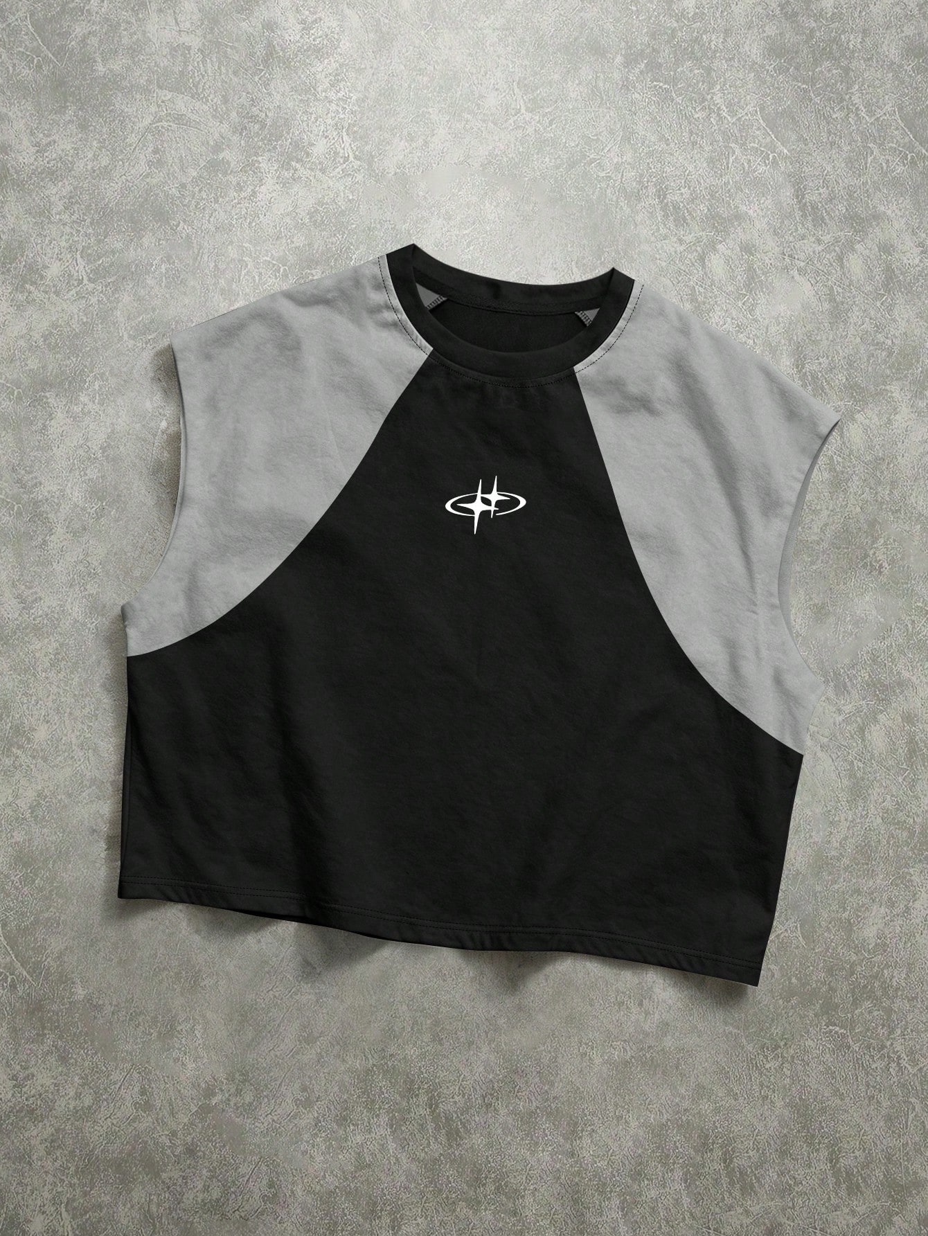 Street Life Men's Crew Neck Patchwork Star Print Casual Versatile Daily Wear Tank Top