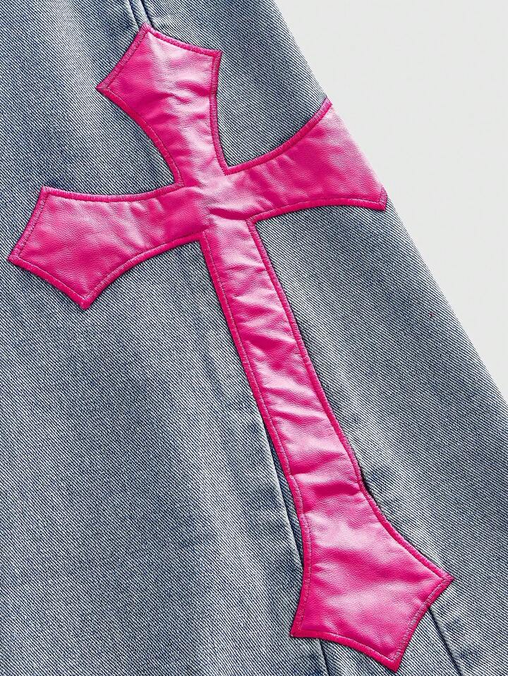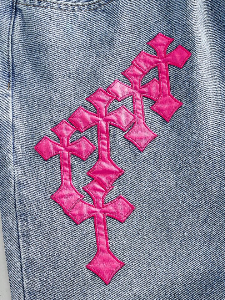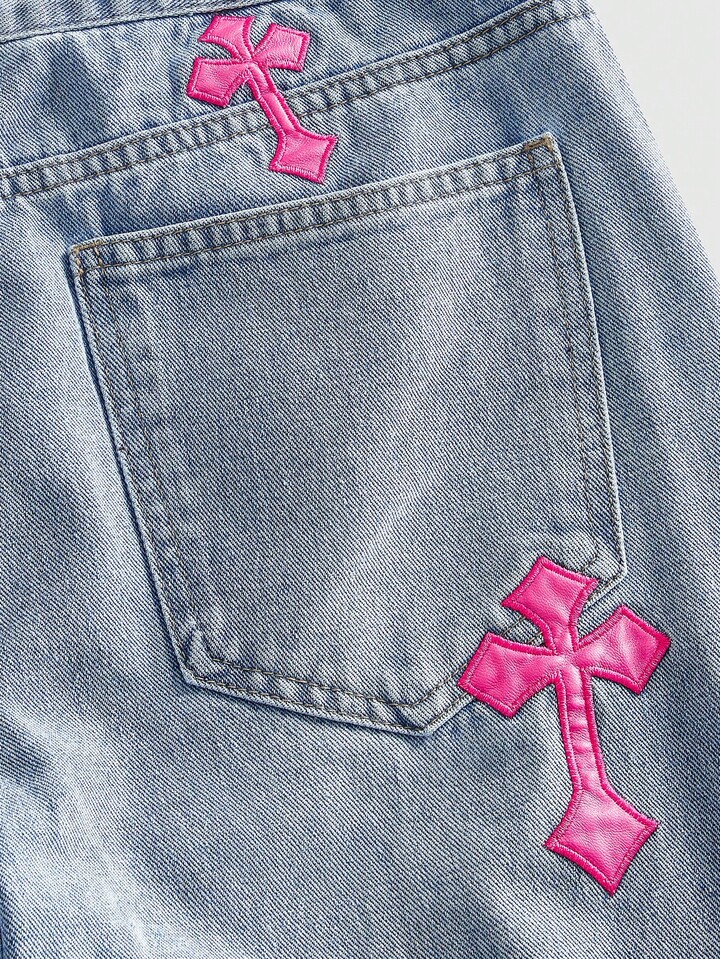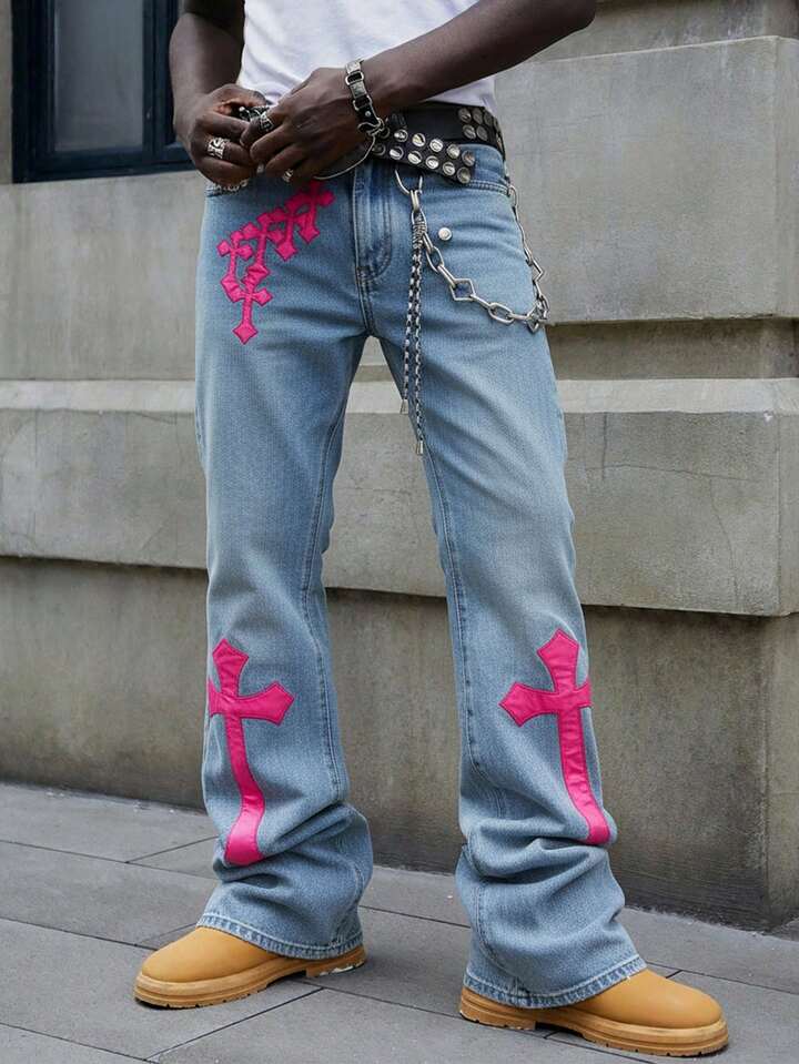 Street Life Men's Cross Embroidered Layered Denim Jeans