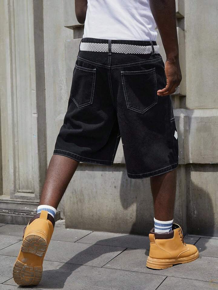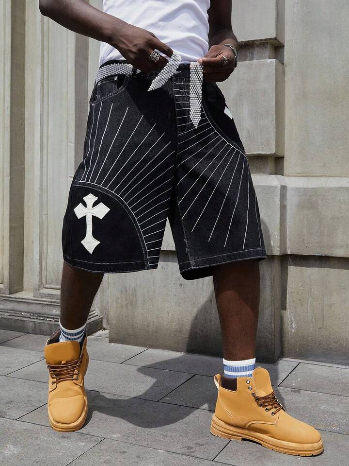 Street Life Men's Cross & Striped Pocket Loose Fit Knee Length Denim Shorts
