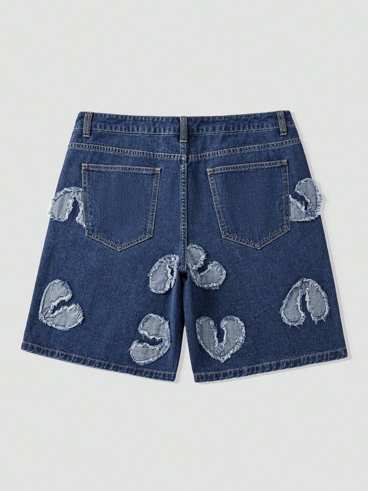 Street Life Men's Denim Cargo Shorts With Decorative Patches , Jorts