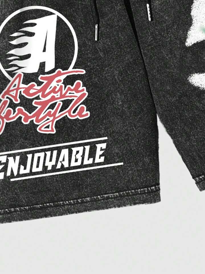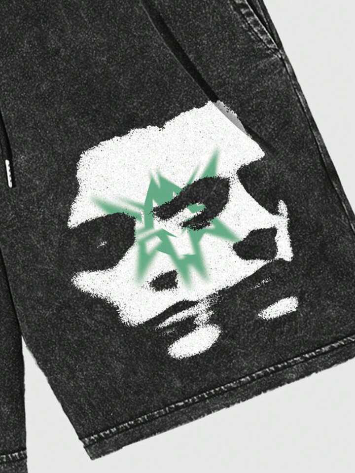Street Life Men's Distressed Graphic Print Washed Shorts