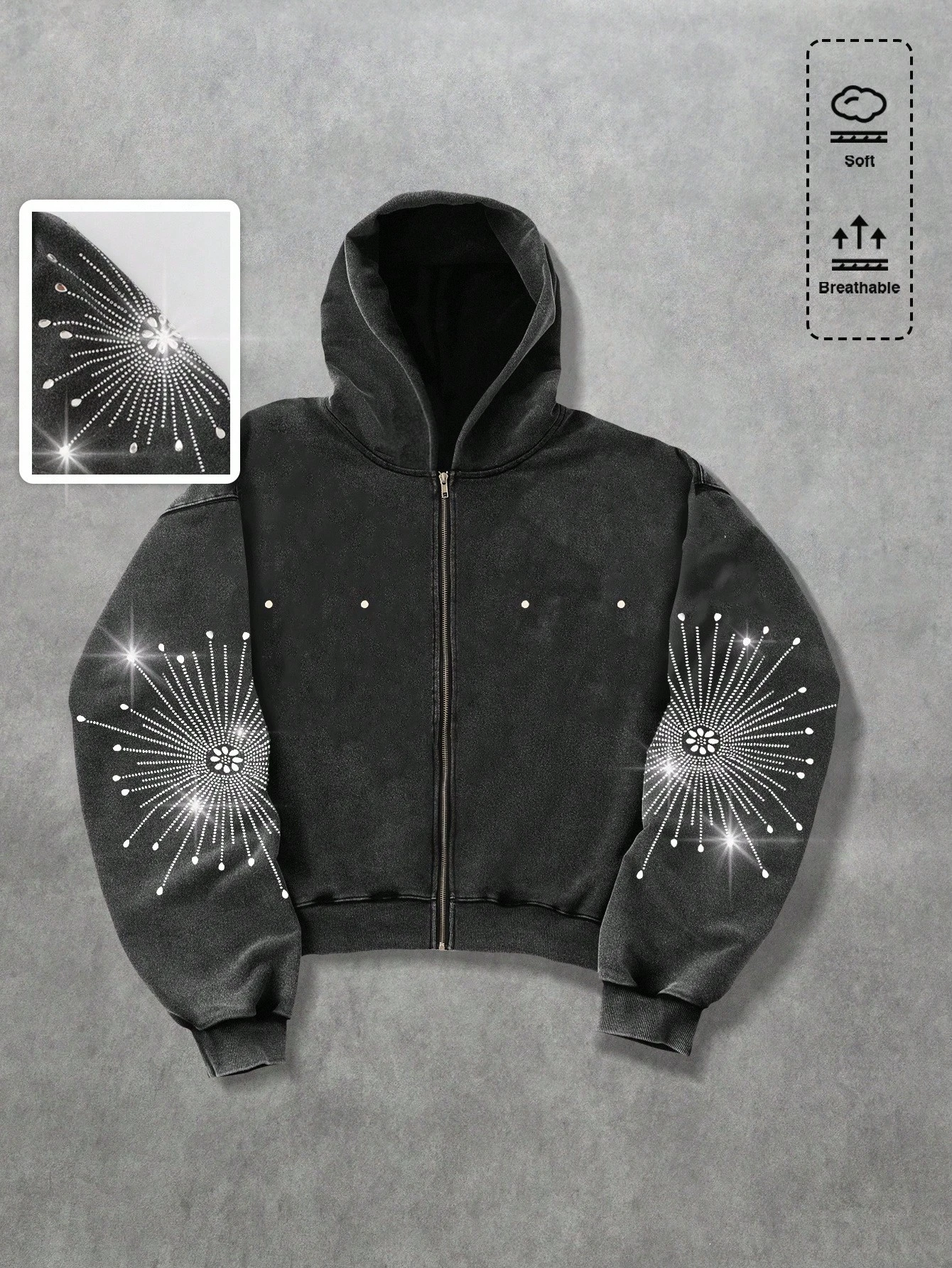 Street Life Men's Distressed Rhinestone Washed Loose Sweatshirt, Vintage Street Style, Fall