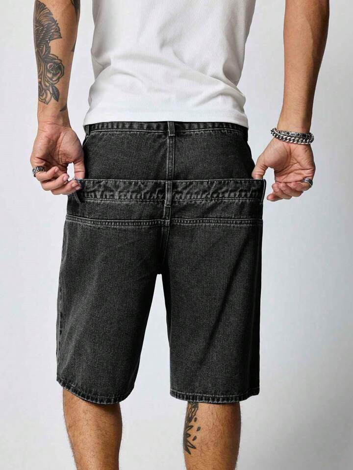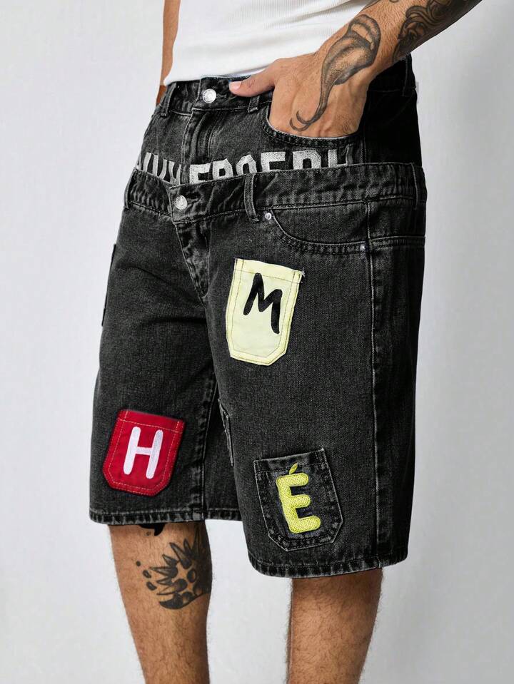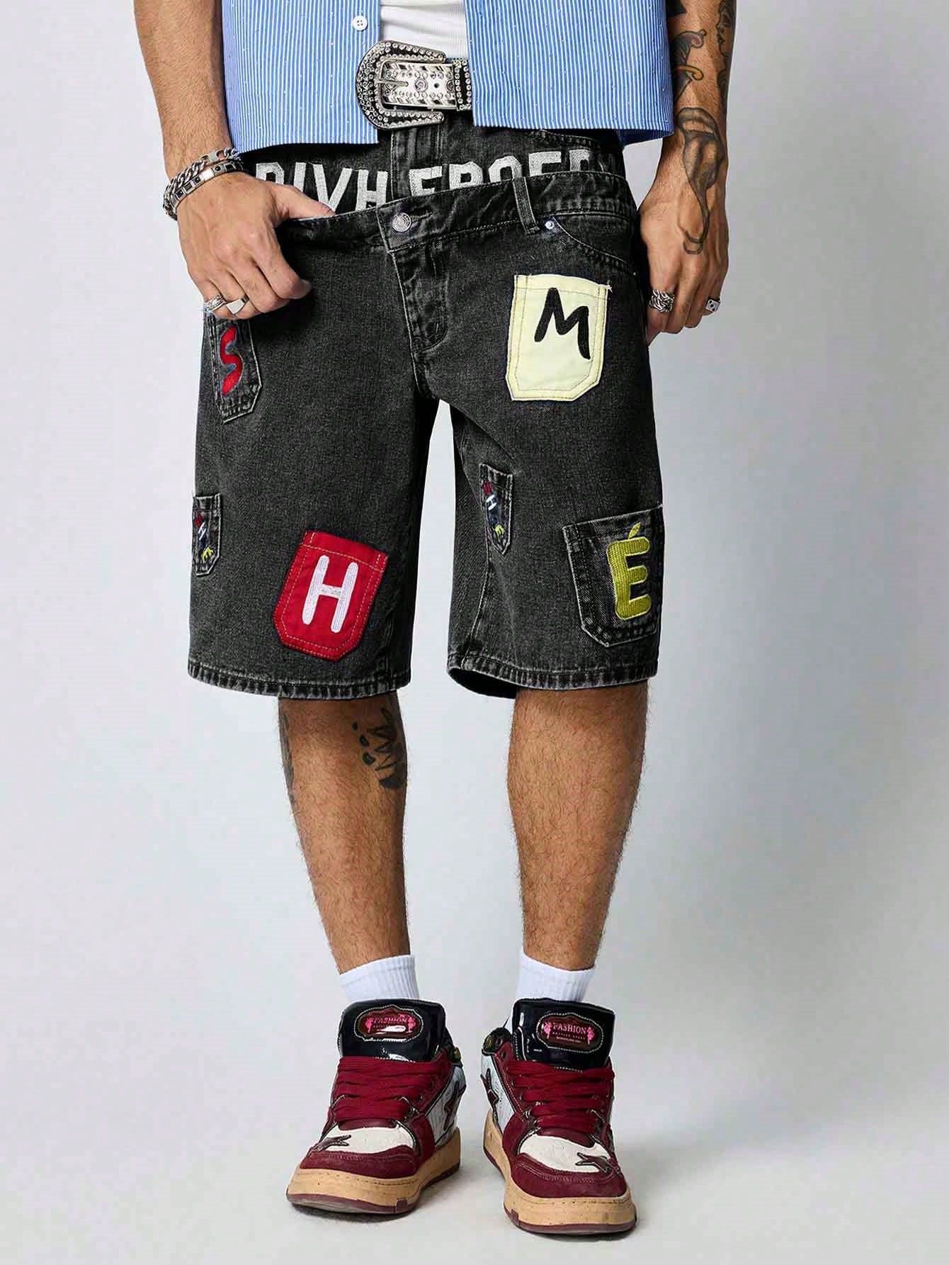Street Life Men's Double-Layered Waistband Embroidered Denim Shorts