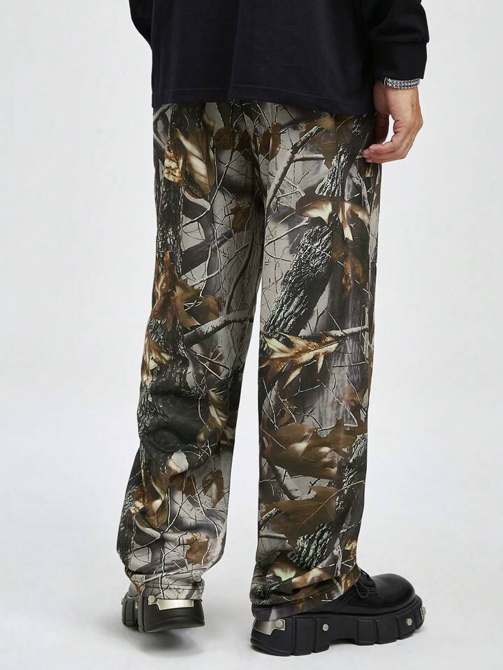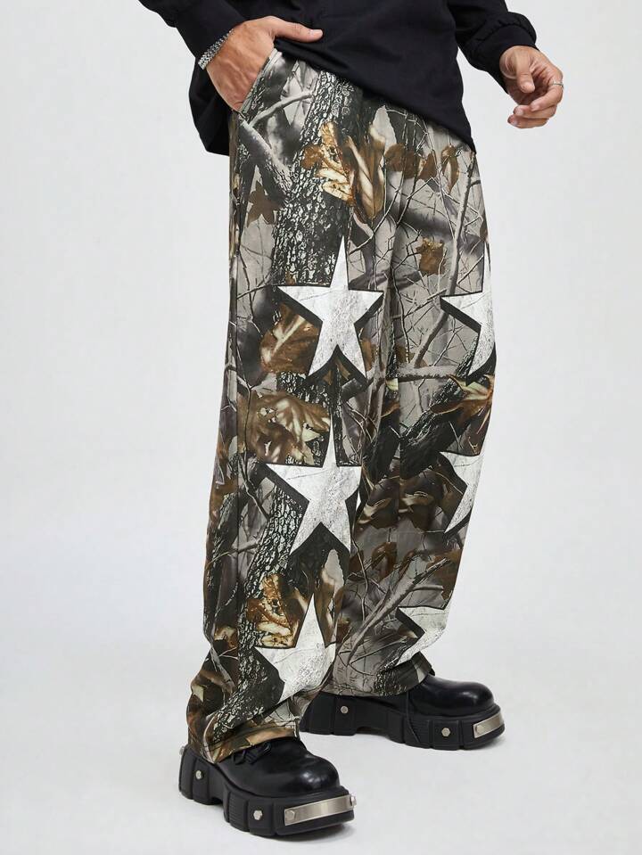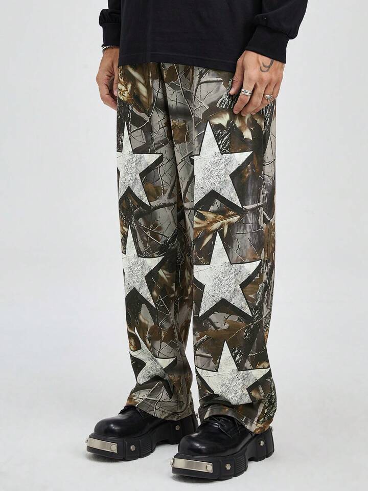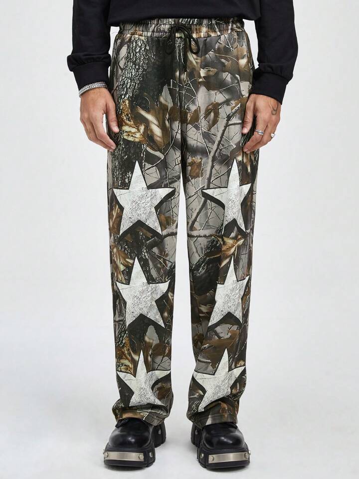 Street Life Men's Elastic Waist All Over Acid-Washed Straight Leg Casual Streetwear Trousers