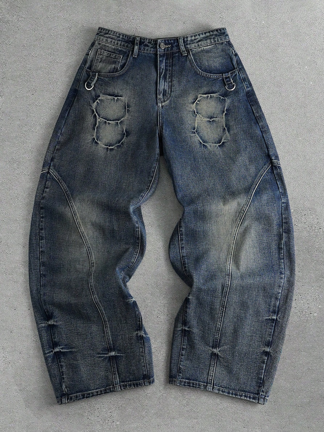 Street Life Men's Embroidered Pattern Relaxed Fit Jeans