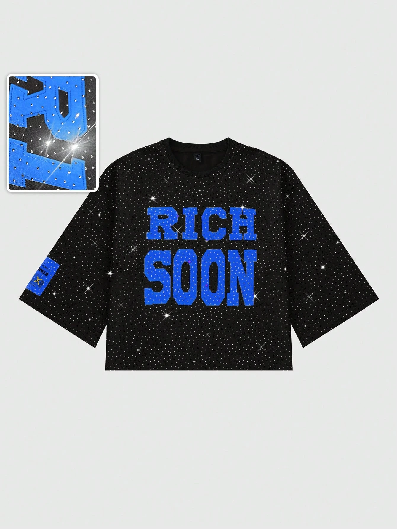 Street Life Men's Fashion Street Style Patch & Rhinestone Detail Short Sleeve T-Shirt, Summer