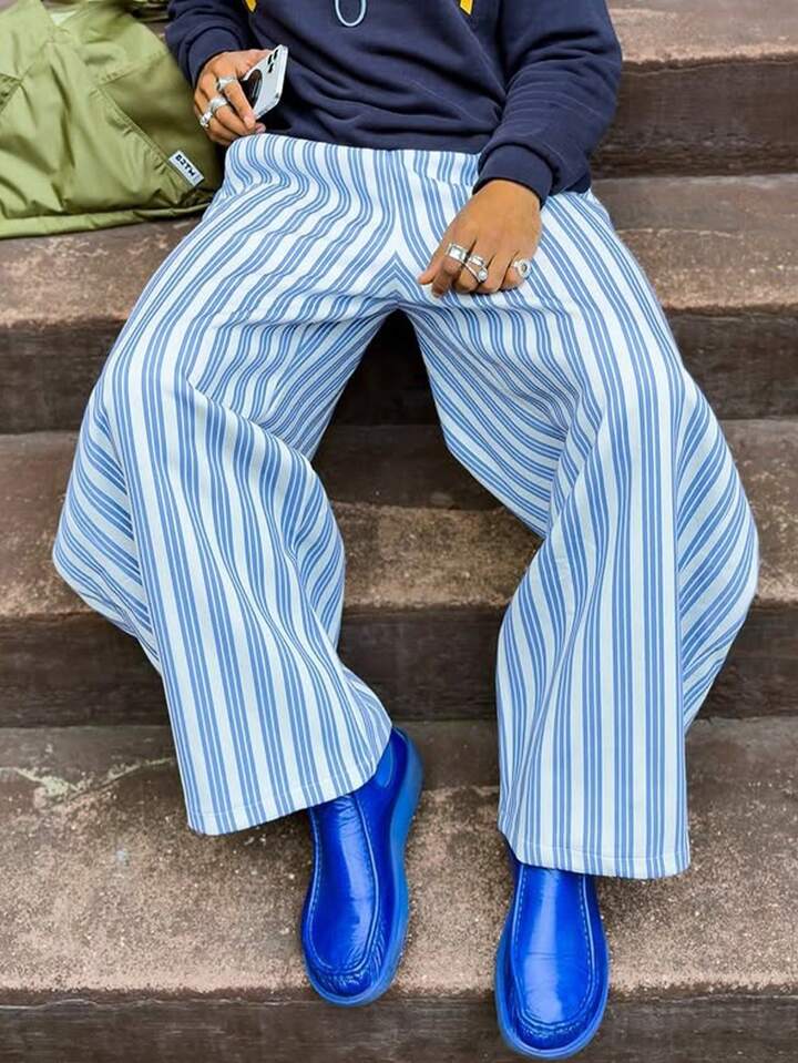 Street Life Men's Fashion Striped Casual Pants, Young Street Style, Versatile Item Suitable For Street Wear, Weekend Outings
